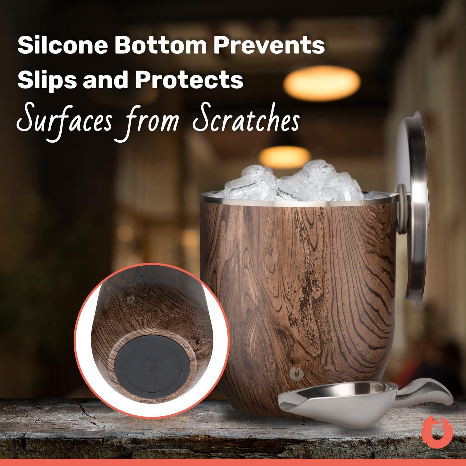 SNOWFOX Plus, Premium Vacuum Insulated Stainless Steel Ice Bucket with Lid/Scoop,Home Bar Accessories,Elegant Bartending Ice Bucket for Parties,Beautiful Outdoor Entertaining Supplies,3L,Natural Teak