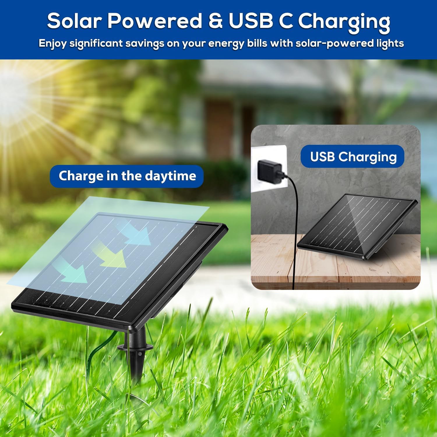 - 【Higher Efficiency Solar Panel & Larger Capacity Battery】The ZYAN solar landscape spotlight features a high-efficiency solar panel with up to 𝟲𝗪 charging power, paired with a built-in 𝟱𝟰𝟬𝟬𝗺𝗔𝗵 battery for reliable - far greater than the 3000mAh capacity and 3–5W power of other brands. Its solar panels achieve 𝟮𝟬% higher conversion and charging efficiency, delivering up to 𝟴𝟬% longer lighting time to keep your garden bright year-round, whether in sunny, rainy, or snowy weather.
