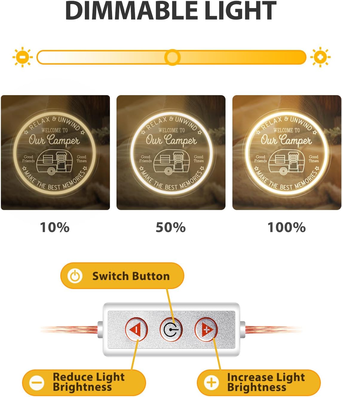 Camper LED Neon Sign for Camping Party Decor, Dimmable Neon Wall Lights Signs for Backyard Patio Garden BBQ Touring Car Decoration, 3D Art Light Up Sign for Housewarming Birthday Gifts