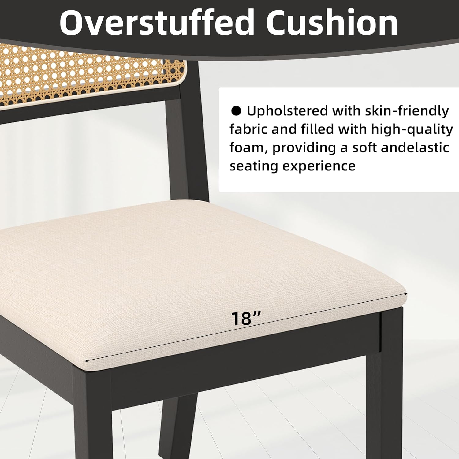 Westice Rattan Dining Chairs Set of 6, Farmhouse Natural Dining Room Chairs with Upholstered Cushion, Wood Armless Chairs for Kitchen/Restaurant, Black
