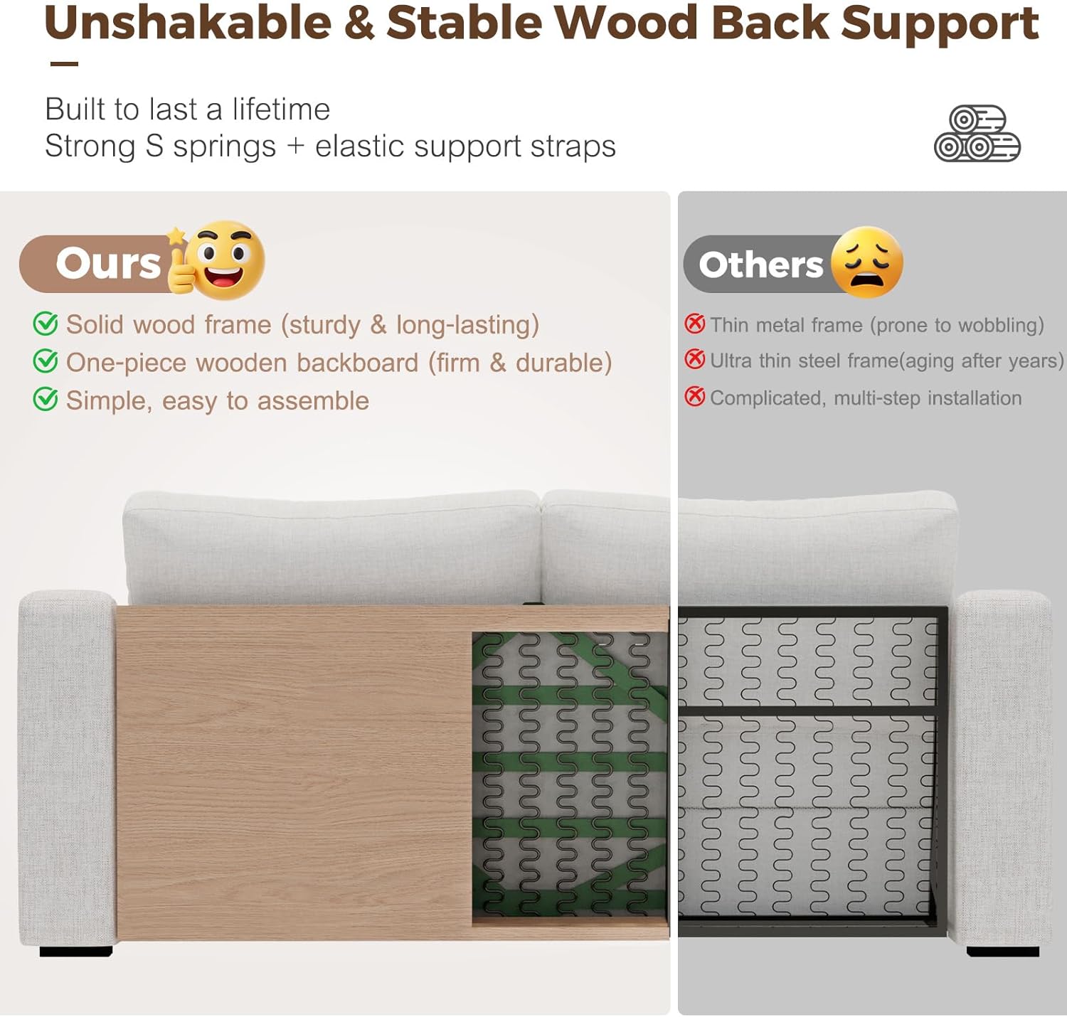 - HIGHER AND THICKENED SEAT - The seat height of the sofa is 18 inches, in comparison to similar products on the market, we have increased the height by approximately 25% in comparison to them.The seat cushion is 7 inches thick and made of high-quality foam with high-grade spring padding. It provides both support and a comfortable seating experience, with a medium firmness level (3 out of 5).