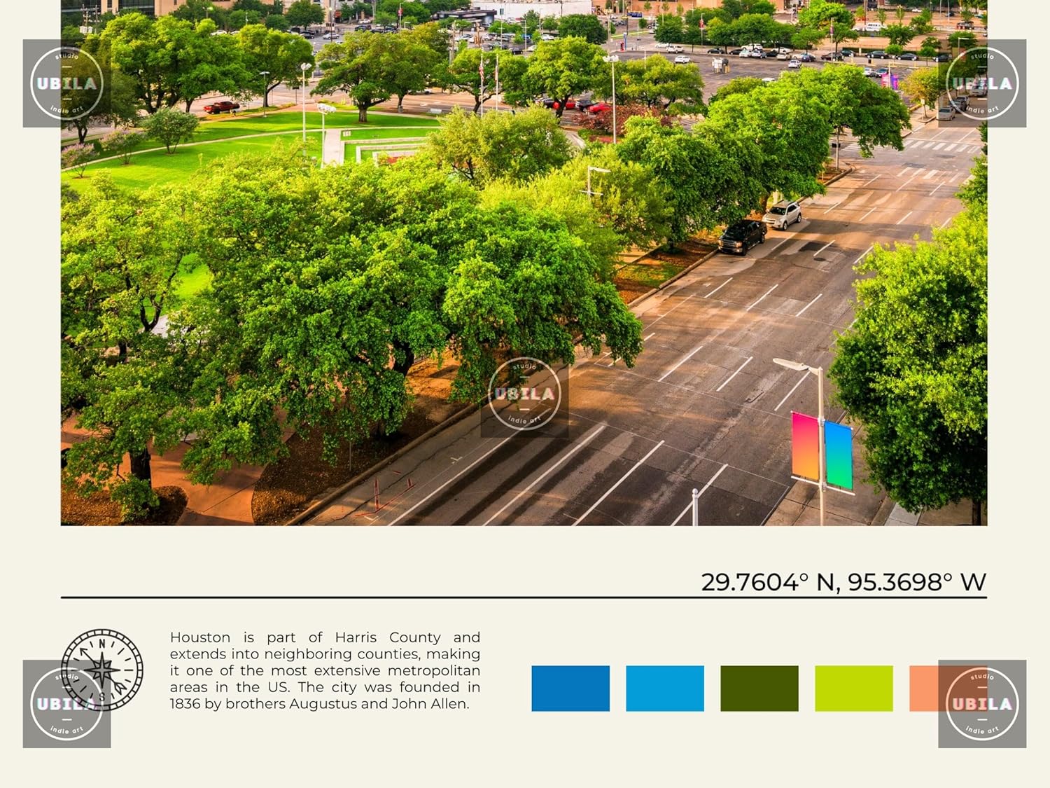 StudioUBILA Houston Wall Art Poster, Decorative Cityscape Landscape Art Prints, Home Decor Wall Art Print for Bedroom Living Room Kitchen Decorations, Unframed