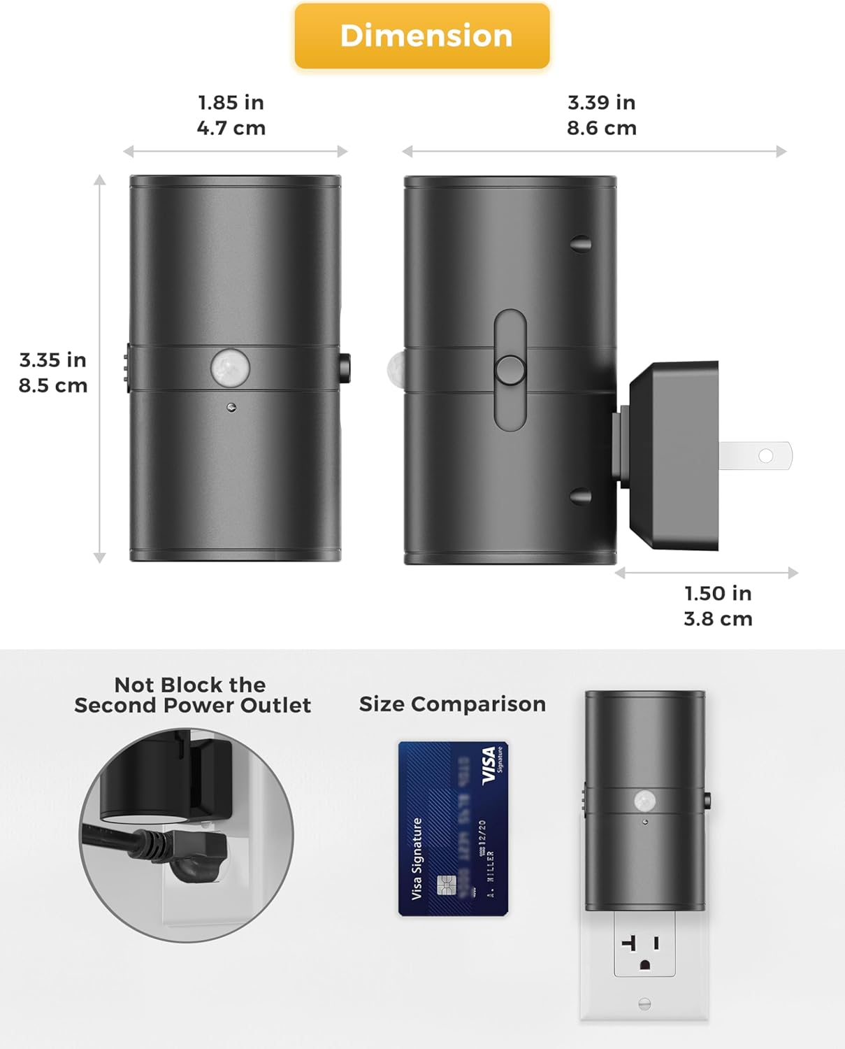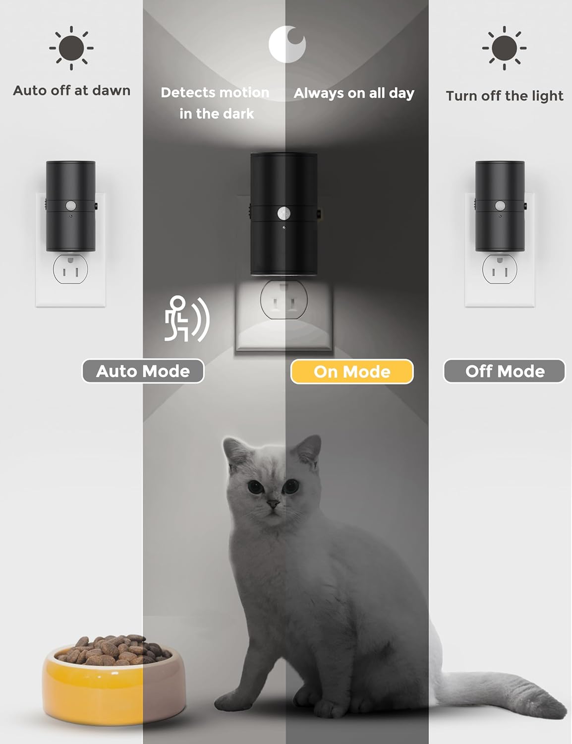 - 3 Lighting Modes: The plug in night light has a built-in motion sensor and 3 lighting modes. "On" mode - always on; "Off" mode - turns off the light; "Auto" mode - automatically turns on when motion is detected in the dark (Sensing Range: 3-5M, 120Β°) and turns off after 60 seconds of inactivity.