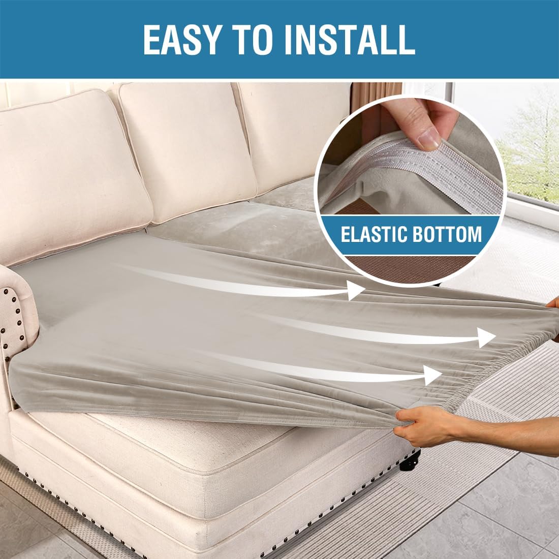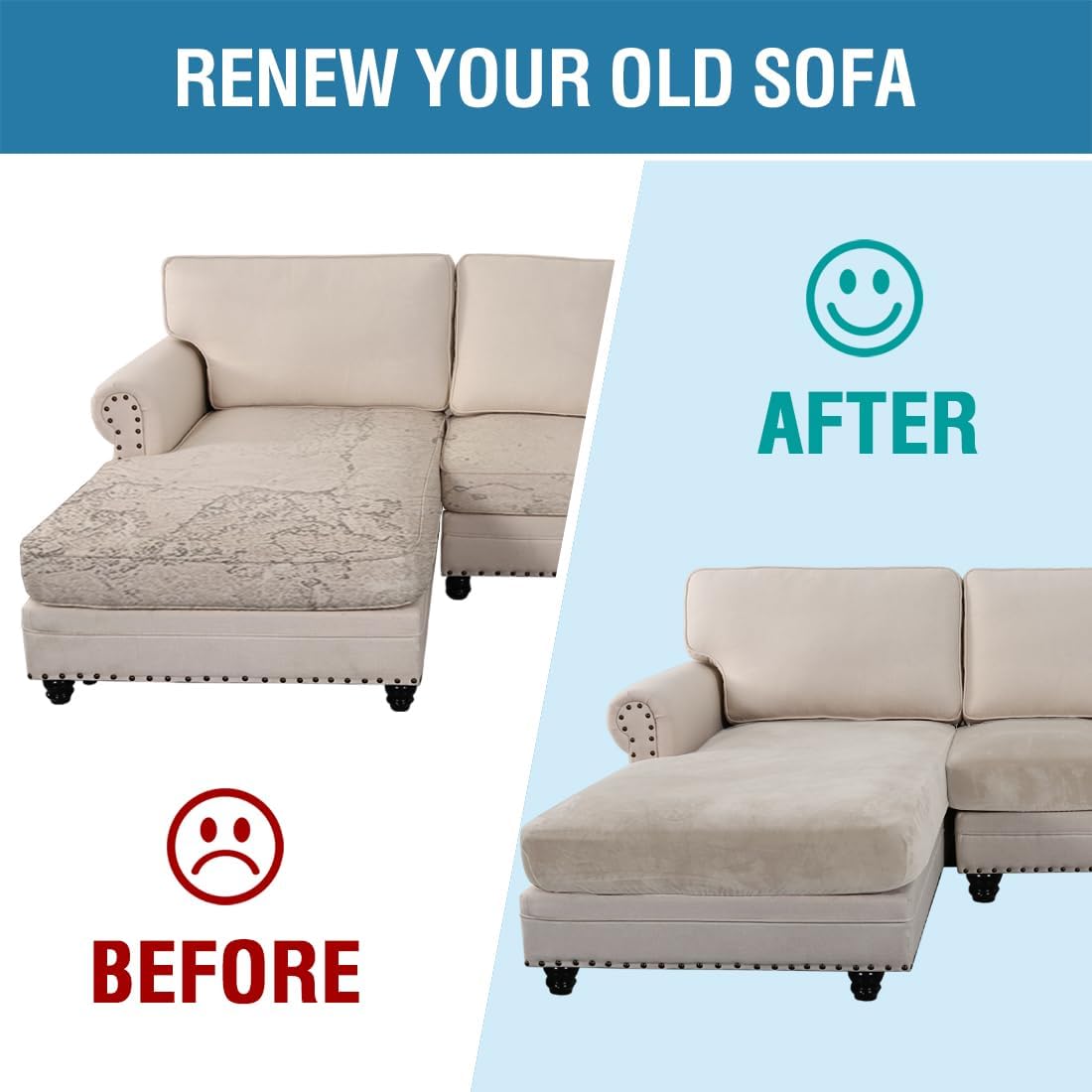 - INCREDIBLY COMFORTABLE VELVET: Products passed GLOBAL RECYCLED STANDARD certificate.This innovated stretch sofa slipcovers are constructed with 3 PIECES,including 1 Chaise cover and 2 individual cushion covers. Crafted from luxurious velvet plush fabric, feature thick, soft, smooth, anti-wrinkle, no fading, durable as well as highly stretch. Protect your cushion furniture from daily wears and tears, stains, kids, scratches from pet claws, dogs or accidental spills
