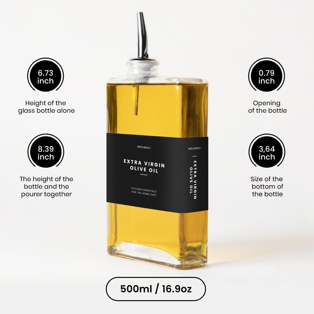 Molimoli Olive Oil Dispenser Bottle for Kitchen, Automatic Pourer, Glass Thin Bottle Dispenser for Kitchen, Olive Oil Cruet, | Set of 2 - Black