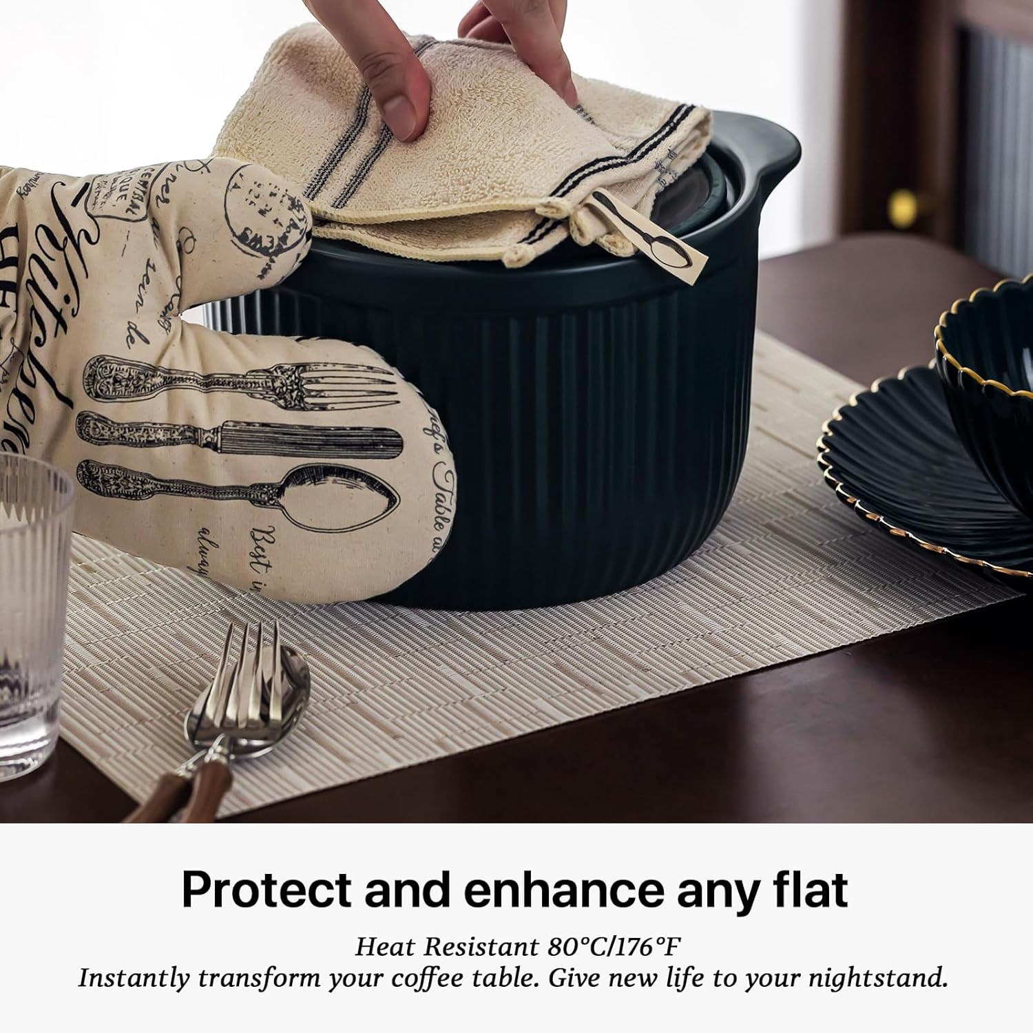 - PERFECT FOR INDOOR AND OUTDOOR:The wipeable placemat is two yarns over two, resulting in a quieter,less textural surface.The neutral color scheme and the classic size (about 12*17 inch)makes the whole table elegant and stylish full of texture!