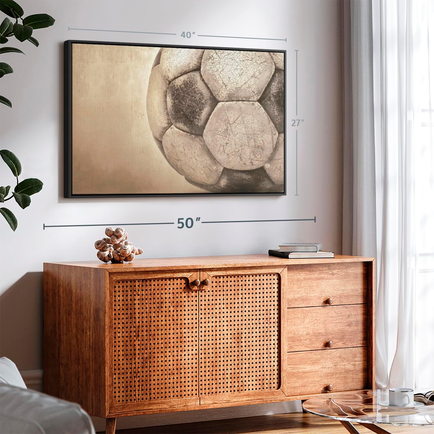 Elephant Stock Worn Soccer Ball Wall Art - Horizontal Framed Canvas - 1-Piece Living Room Wall Decor - Photography sports Canvas Print - Brown and Gray Decor for Wall - 40" X 27"