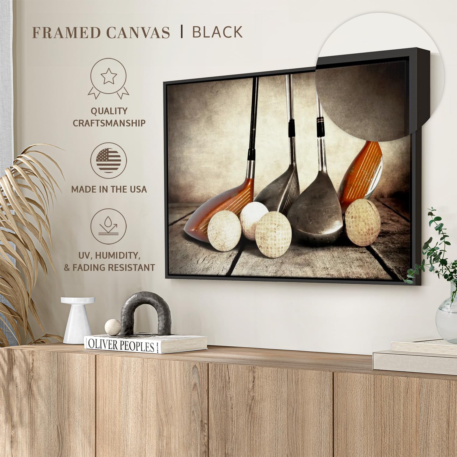 - Durable Canvas Features - Our long-lasting other sports 1-Piece canvas is made from a non-fading UV and Humidity-resistant 330 GSM Polyester Canvas. This Golf Sets canvas can be used as a masculine mancave wall art.