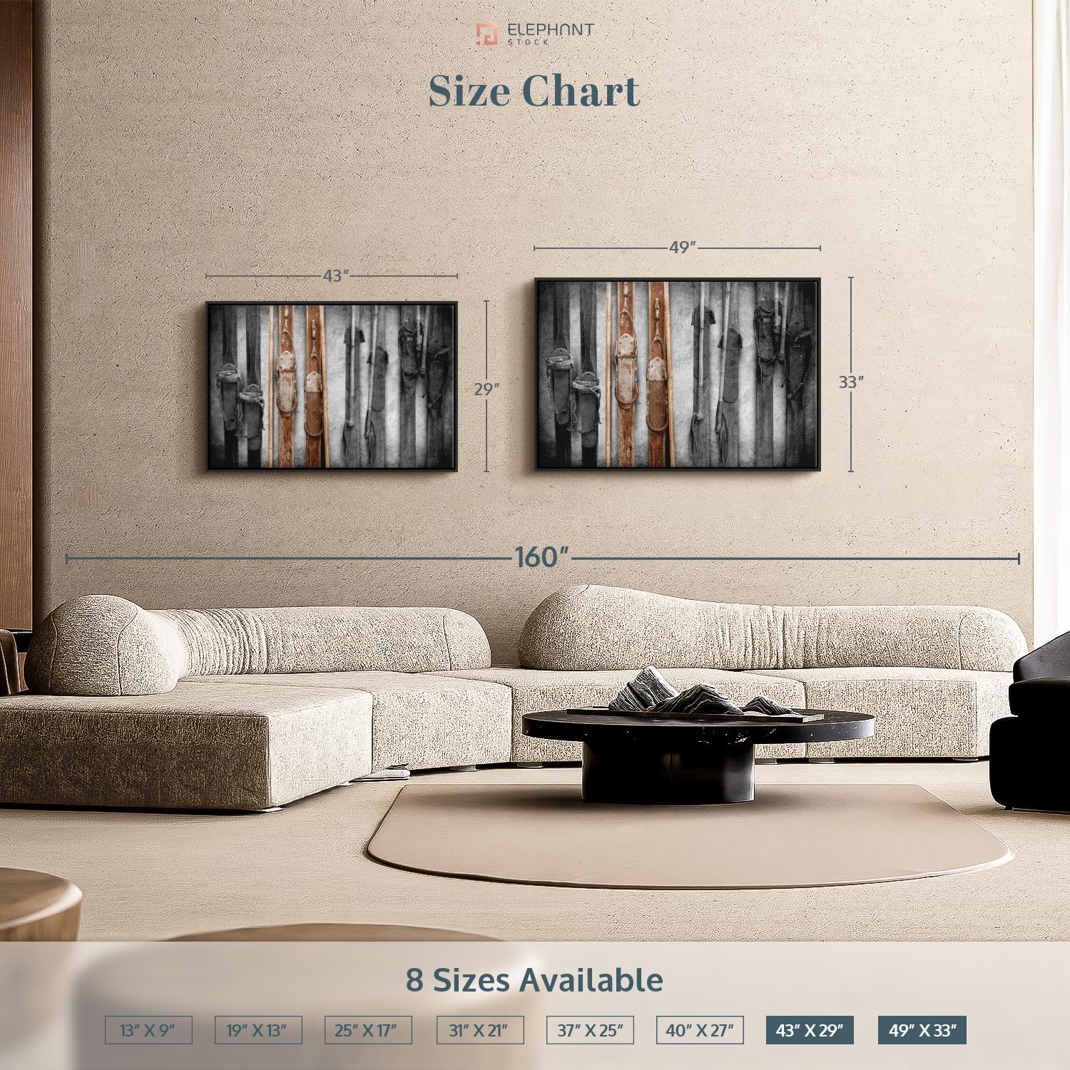 ElephantStock Ski Collection Wall Art - Horizontal Framed Canvas - 1-Piece Bathroom Wall Decor - Photography sports Canvas Print - Brown and Black Decor for Wall - 43" X 29"