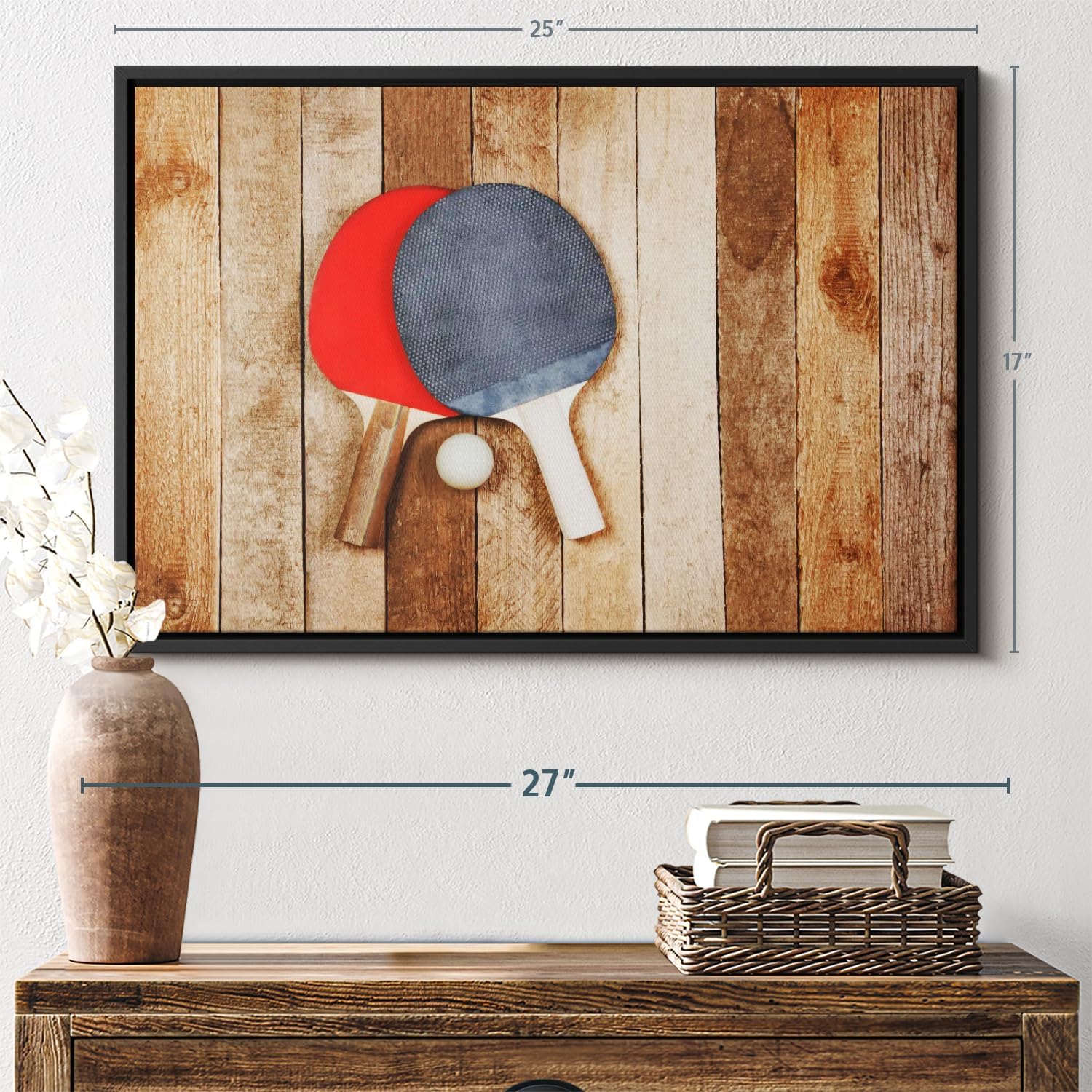 ElephantStock Ping Pong Wall Art - Horizontal Framed Canvas - 1-Piece Living Room Wall Decor - Photography Canvas Print - Brown and Red Decor for Wall - 25" X 17"