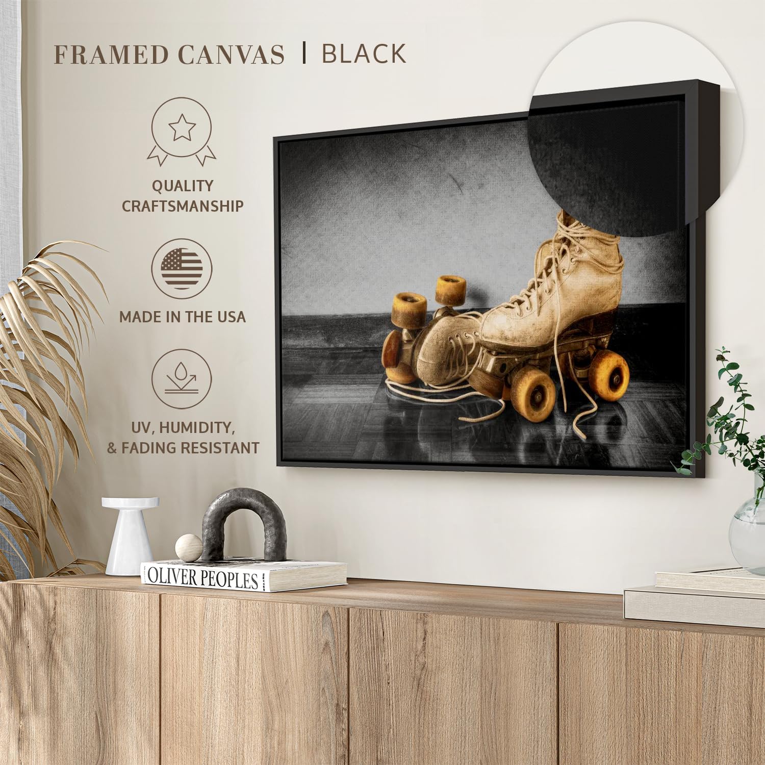 ElephantStock Vintage Skates Pop Wall Art - Horizontal Framed Canvas - 1-Piece Living Room Wall Decor - Sport Photography Canvas Print - Beige and Black Decor for Wall - 13" X 9"