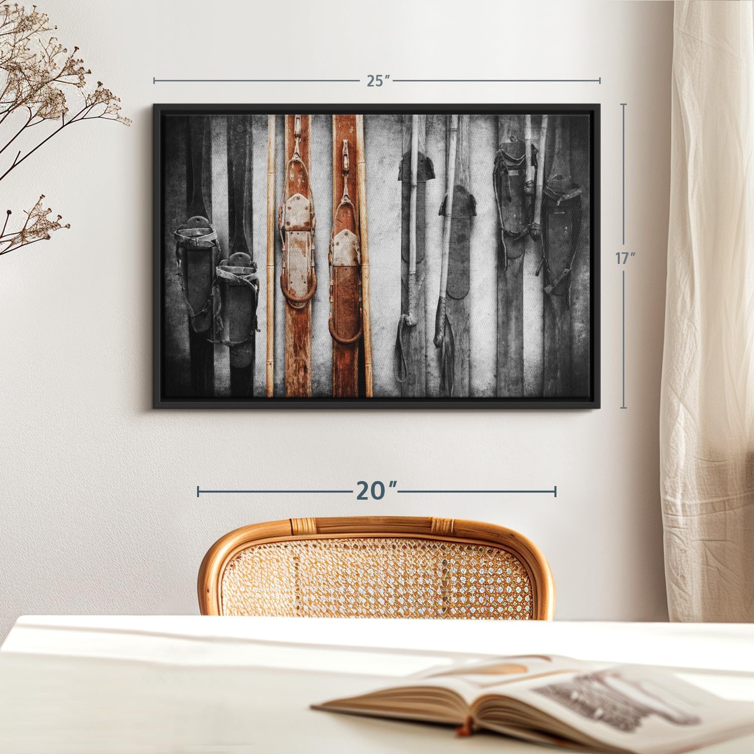 ElephantStock Ski Collection Wall Art - Horizontal Framed Canvas - 1-Piece Bathroom Wall Decor - Photography sports Canvas Print - Brown and Black Decor for Wall - 25" X 17"
