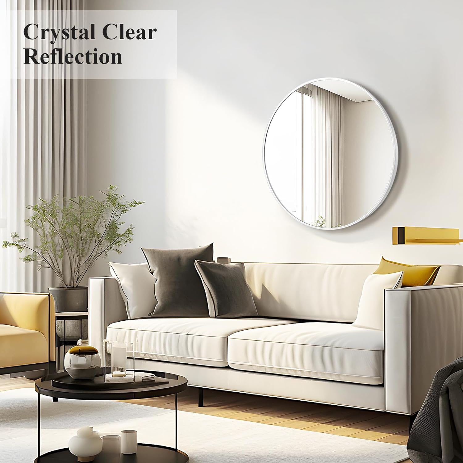 Fabuday Silver Round Mirror for Wall 24 inch - Circle Mirror for Bathroom, Entryway, Living Room, Hallway, Vanity Decor, Small Matte Metal Frame Mirrors