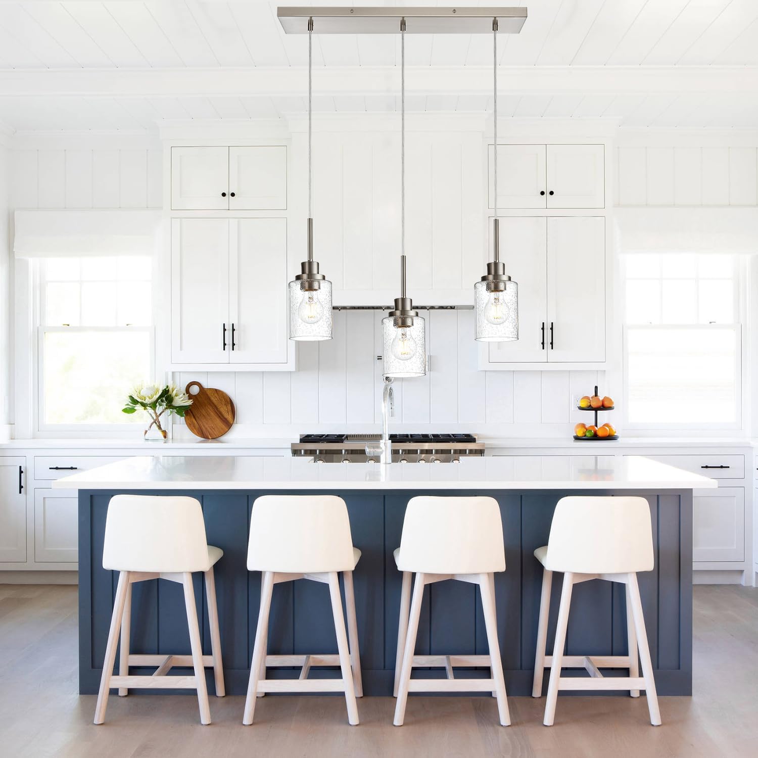 - Versatile Applications: The clean, classic design makes this 3-light cluster pendant light a versatile choice for various settings, including kitchens, dining rooms, hallways, living rooms, restaurants, hotels, and bedrooms.