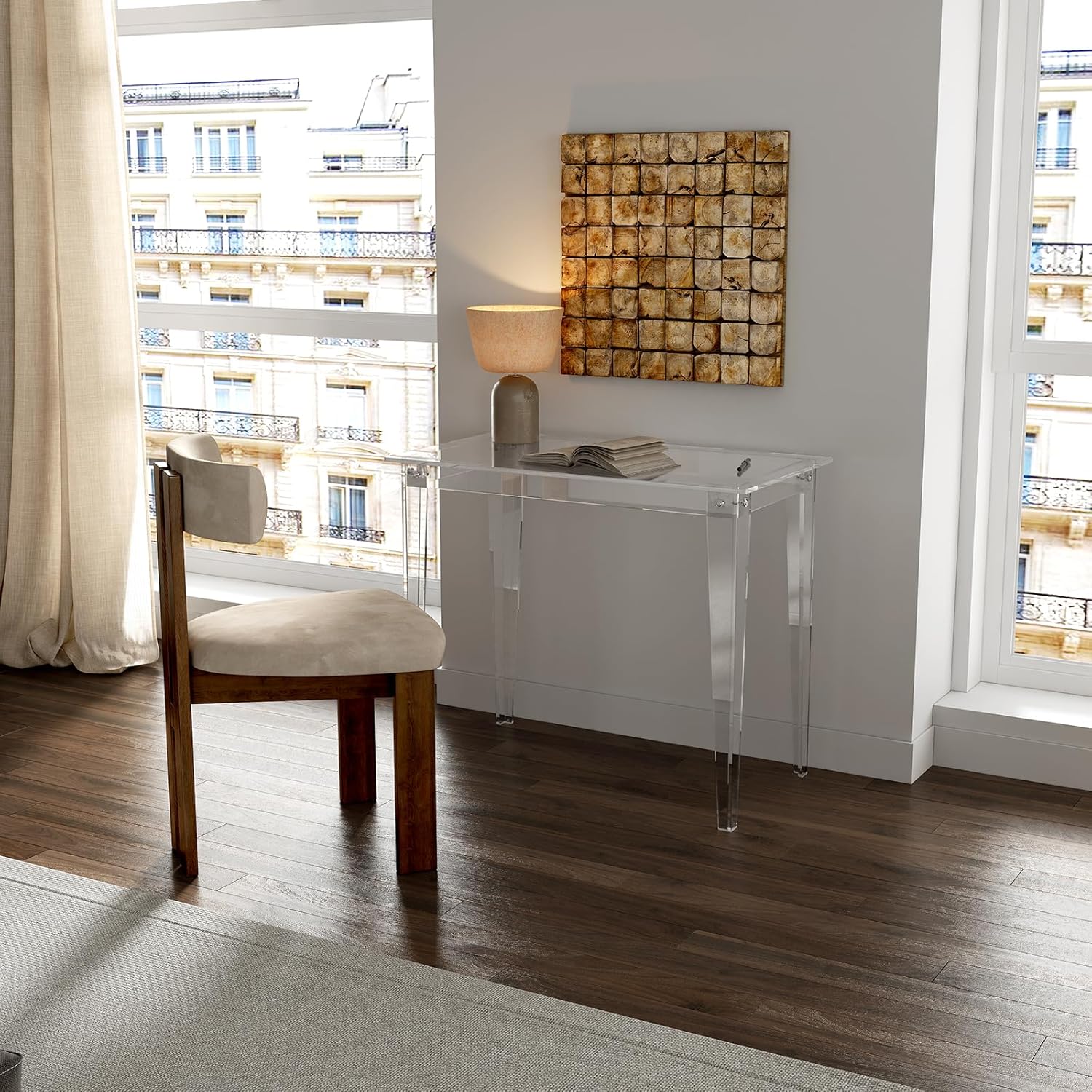HMYHUM Small Acrylic Computer Desk, 35.4 Inch, Clear Study Desk for Home Office, Writing, Vanity, Modern, Easy Assembly, 19.7" W x 29.5" H, Right-Angle Legs Design