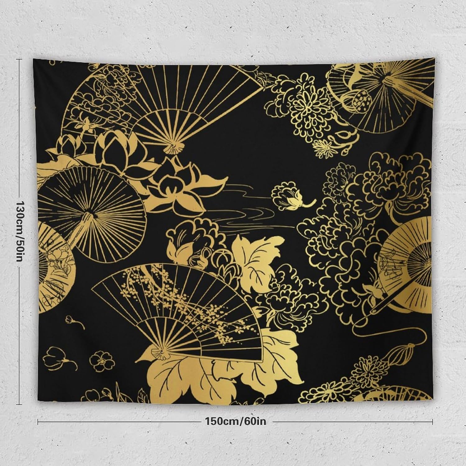 HZOHNAGO Japanese Tapestry Gold Flowers Umbrella Fan Pattern Printed Wall Tapestry Painting Wall Hanging for Bedroom Living Room Dorm 60" W x 50" H