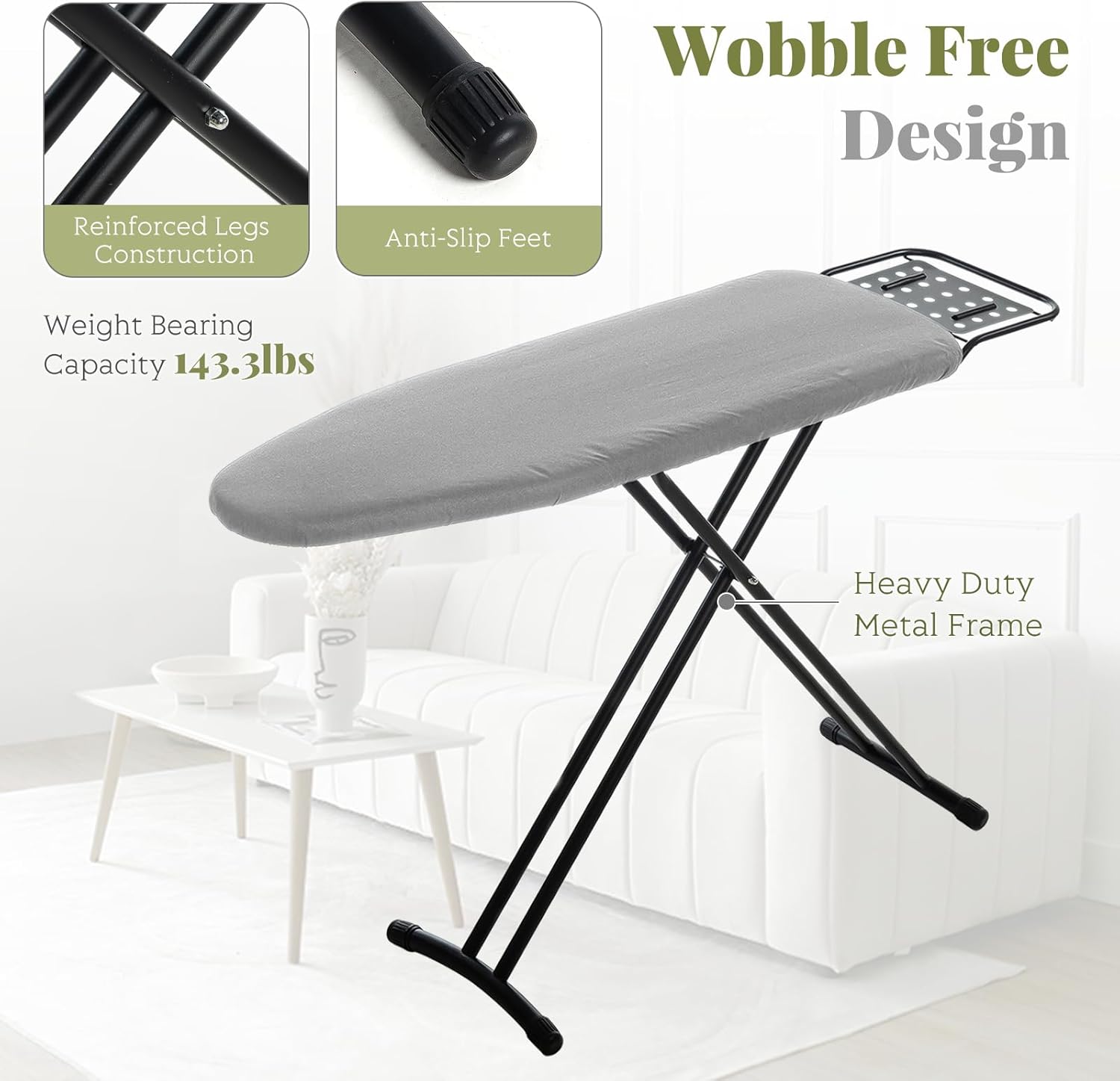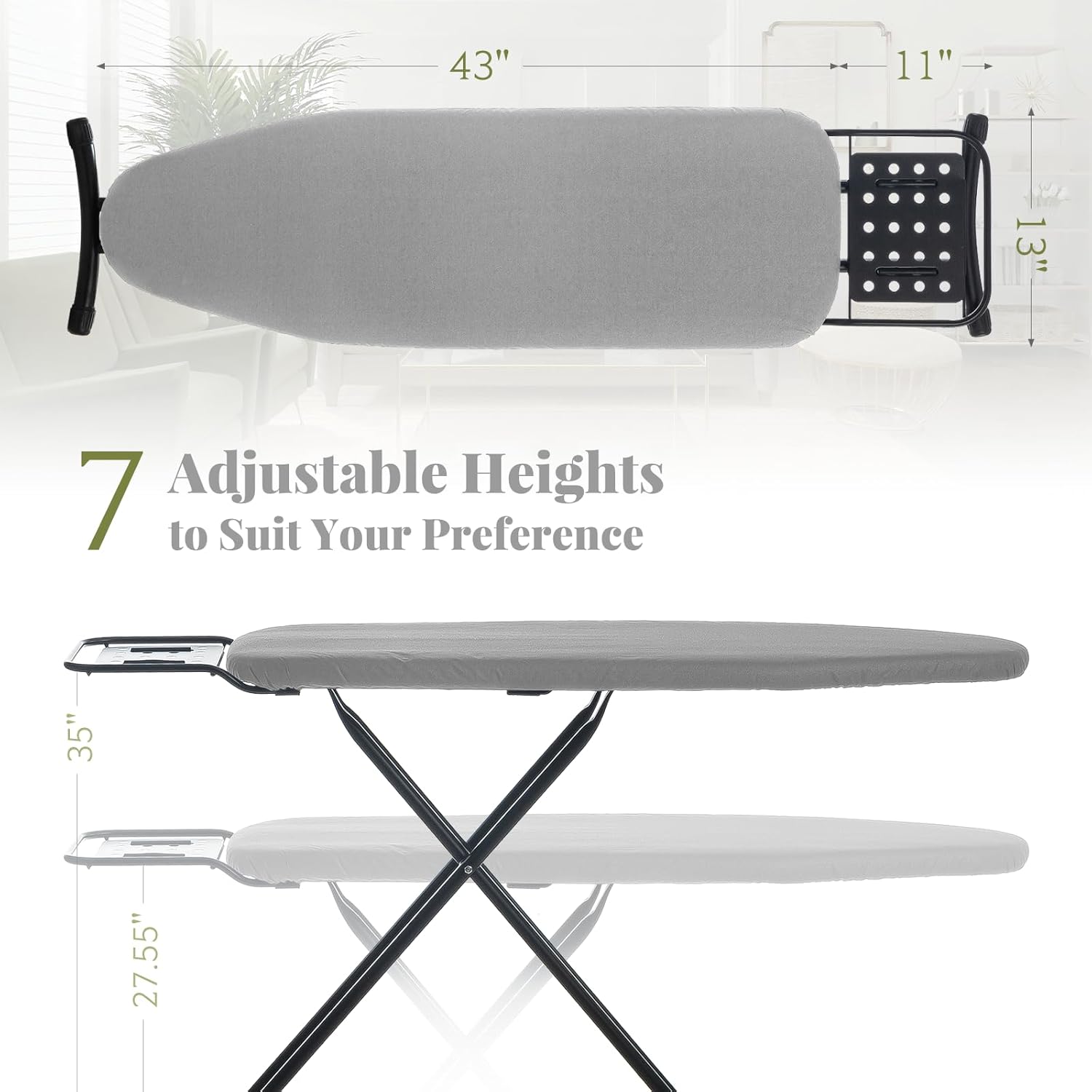 Ironing Board Full Size, RAINHOL 43"x13" Heavy Duty Compact Ironing Board with Iron Rest, Height Adjustable Sturdy Iron Stand, Grey Cover with Extra Thick Padding
