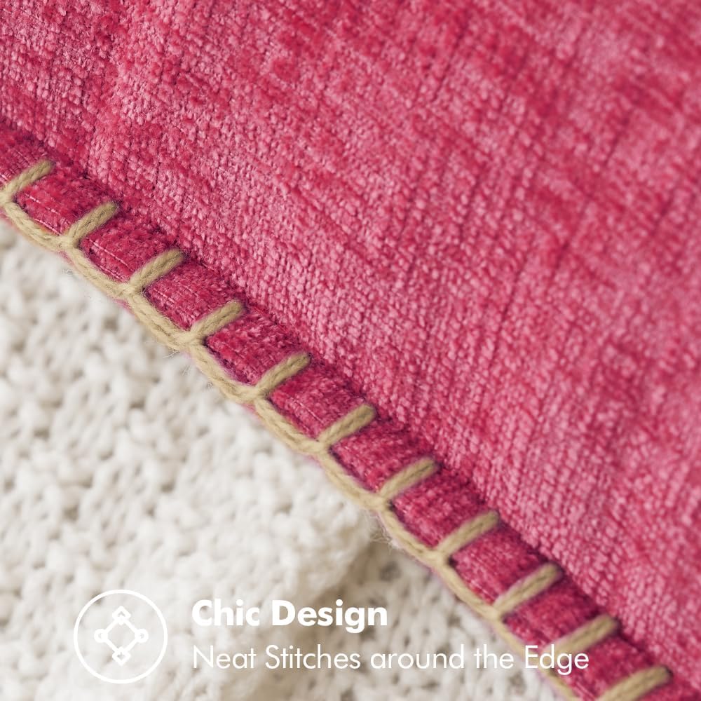 MIULEE Pack of 2 Couch Throw Pillow Covers 18x18 Inch Hot Pink Farmhouse Decorative Pillow Covers with Stitched Edge Soft Chenille Solid Dyed Spring Pillow Covers for Sofa Bed Living Room