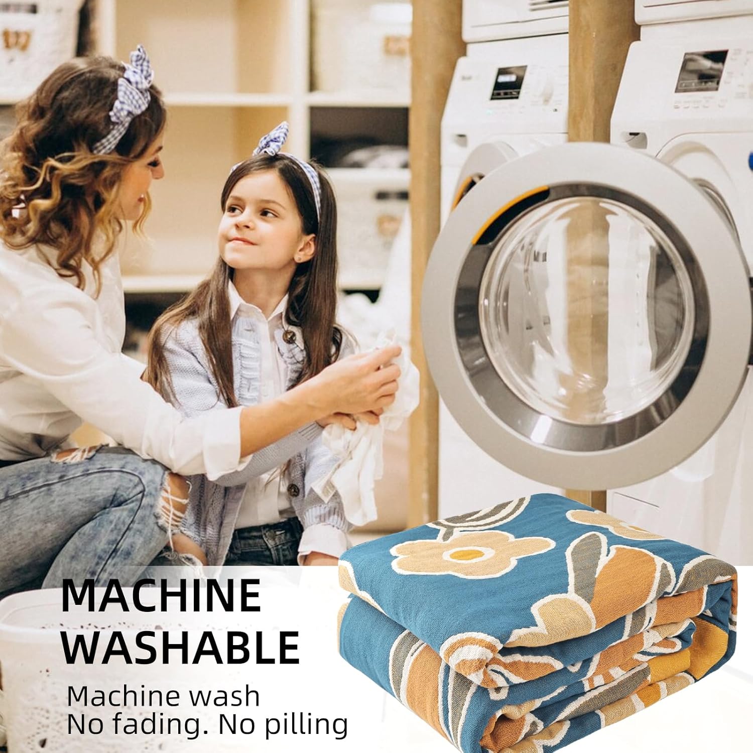Boho Throw Blanket for Bed - 100% Pure Cotton Ultra Soft Rustic Quilt - Farmhouse Decor Bed Blankets, All Season Rustic Throw for Sofa Couch Chair(60"×80", Floral)