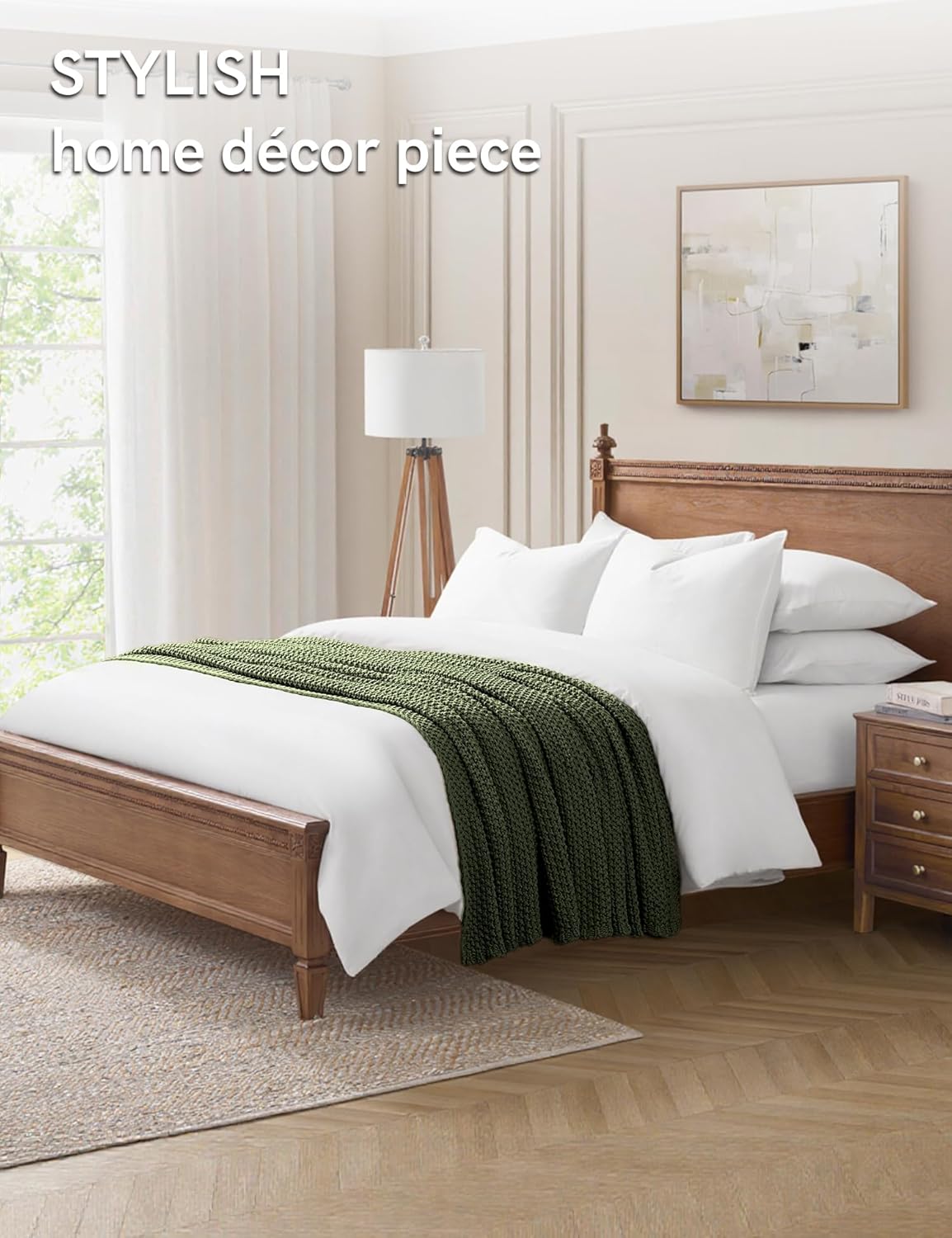 YnM Chunky Cotton Knit Throw Blanket, Cable Knit Throws for Bed Couch Sofa, Comfy & Relaxing, Decorative Piece for Farmhouse Modern Boho Rustic Scandinavian Chic Vibe, Pine Green 60x80 Inches