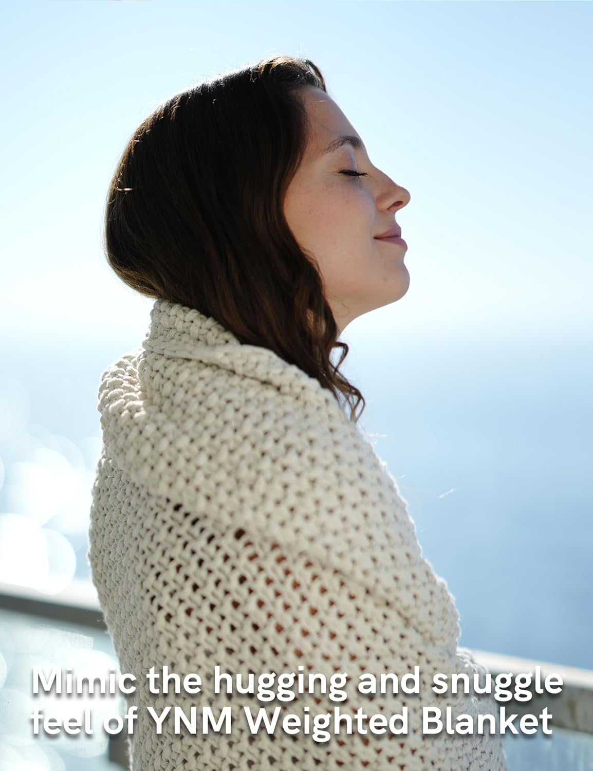 - [Style Meets Function] In order to mimic the hugging and snuggle feel of YNM Weighted Blanket, medium weight chunky yarn is chosen to hand knit this thick blanket(50x60 weighs 4.4lb, 60x80 weighs 7.3lb, 80x87 weighs 10.5lb). This thick chunky yarn not only provide soothing and relaxation feel, but also add texture to your blanket. Wrap around you on the sofa, layer the chunky knit blanket under your duvet or quilt to add warmth, or drape across your bed as a textural throw.