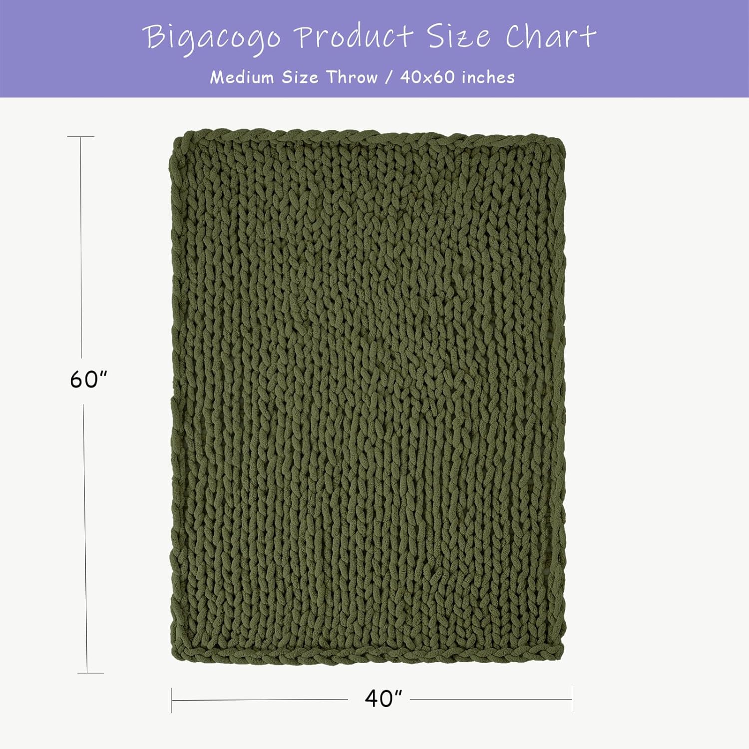 Bigacogo Chunky Knit Throw Blanket for Couch, 40x60 inches, 100% Hand Knitted with Thick Jumbo Chenille Yarn, Cozy Soft Large Rope Knot Cable Crochet Blankets for Sofa Bed Living Room, Yellow Green