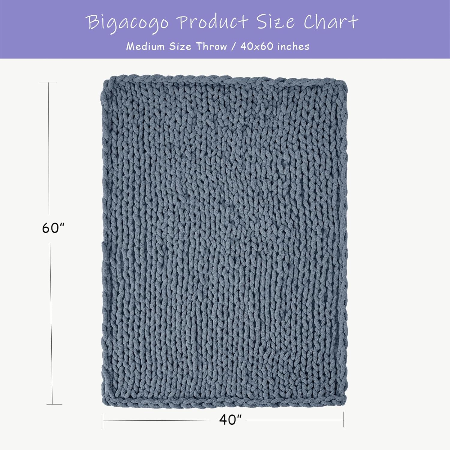 Bigacogo Chunky Knit Throw Blanket for Couch, 40x60 inches, 100% Hand Knitted with Thick Jumbo Chenille Yarn, Cozy Soft Large Rope Knot Cable Crochet Blankets for Sofa Bed Living Room, Cold Sea Blue