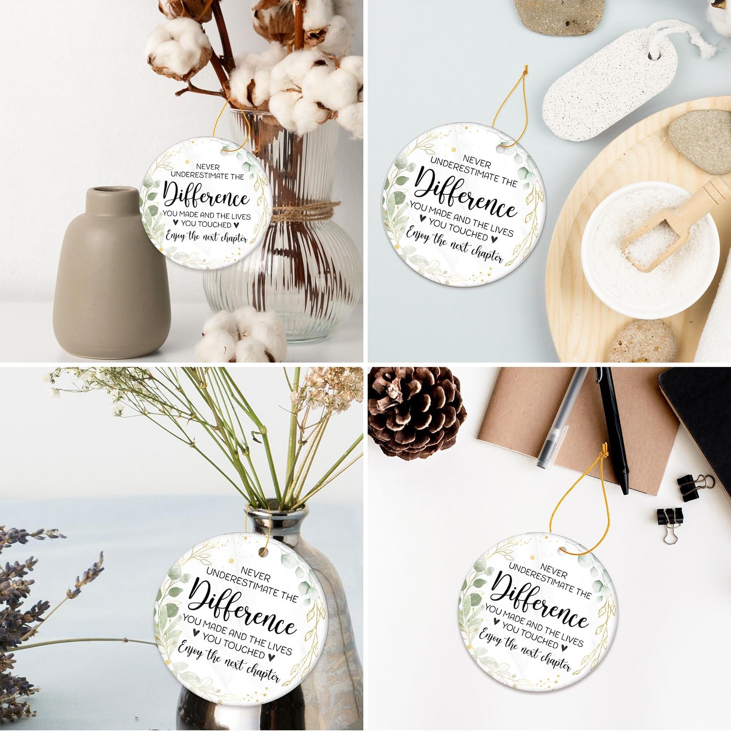 - CRAFTED FROM PREMIUM CERAMIC: Embrace the enduring charm of high-quality white ceramic, renowned for its durability. Both the front and back feature identical, vibrant patterns that won't blur or fade. Waterproof and wear-resistant, this ornament promises to maintain its pristine look for years to come