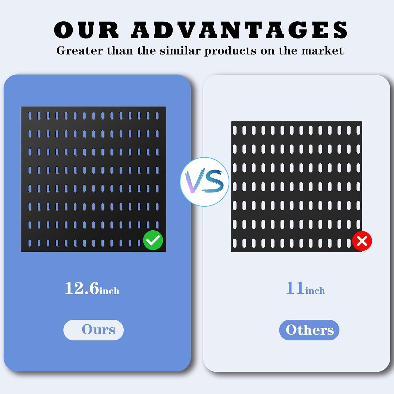 - Cost-Effective: This Pegboard Combination Kit is adjustable and removable. This new set is12.6"X12.6", bigger than the formal 11”X11”. The 20 accessories show more cost-effective than the formal 16 accessories