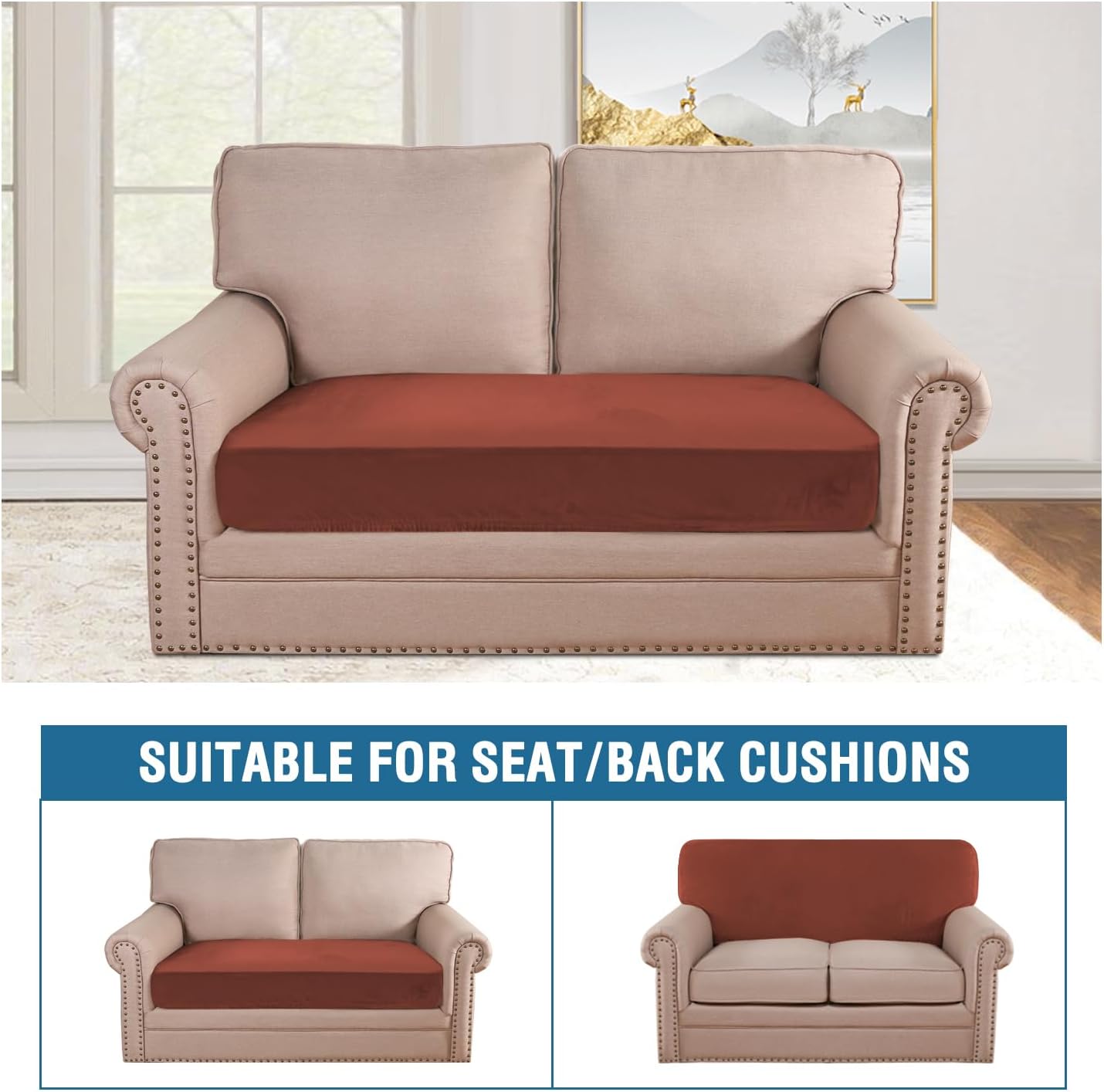 H.VERSAILTEX Velvet Stretch Individual Couch Cushion Cover Plush Slipcover for Loveseat Sofa Furniture Protector Seat Cover (1 Piece Loveseat Cushion Cover, Rust)