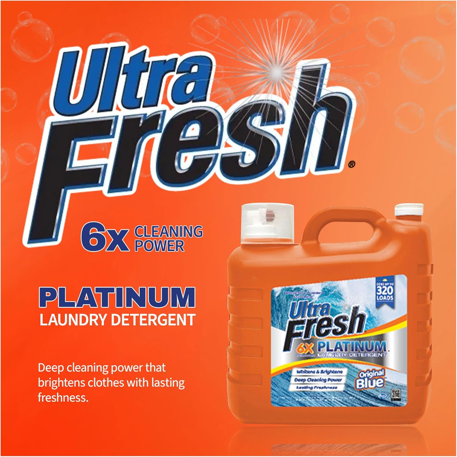Ultra Fresh 2 x 2.5 Gallon Liquid Laundry Detergent Washing Soap for All Machine Types, 6X Platinum, Up to 640 Loads, Original Blue