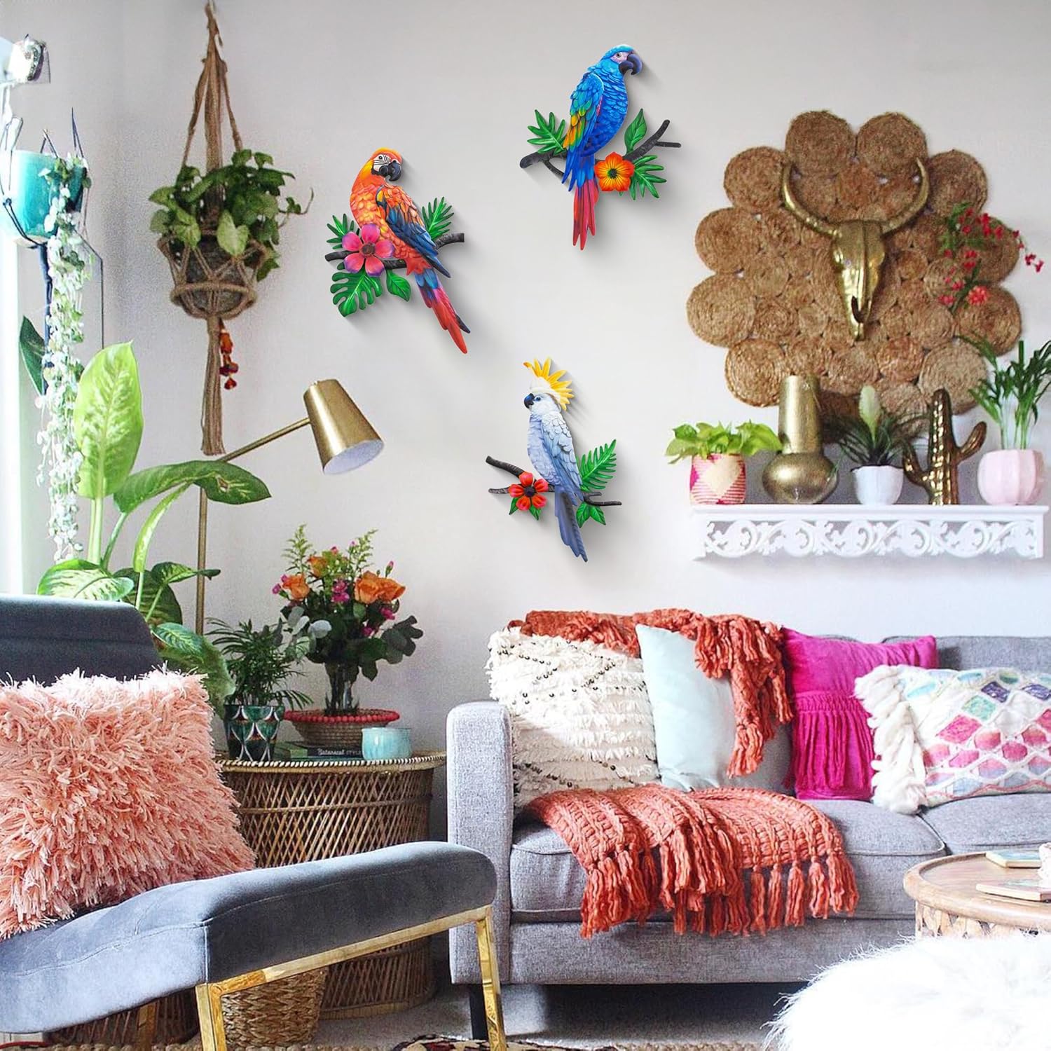 - 【Metal Art Wall Decor】Our wall decor bird presents three lifelike colorful parrots, metal wall art a unique decoration for your garden decor. The metal wall art bird measures,fence decorations outdoor