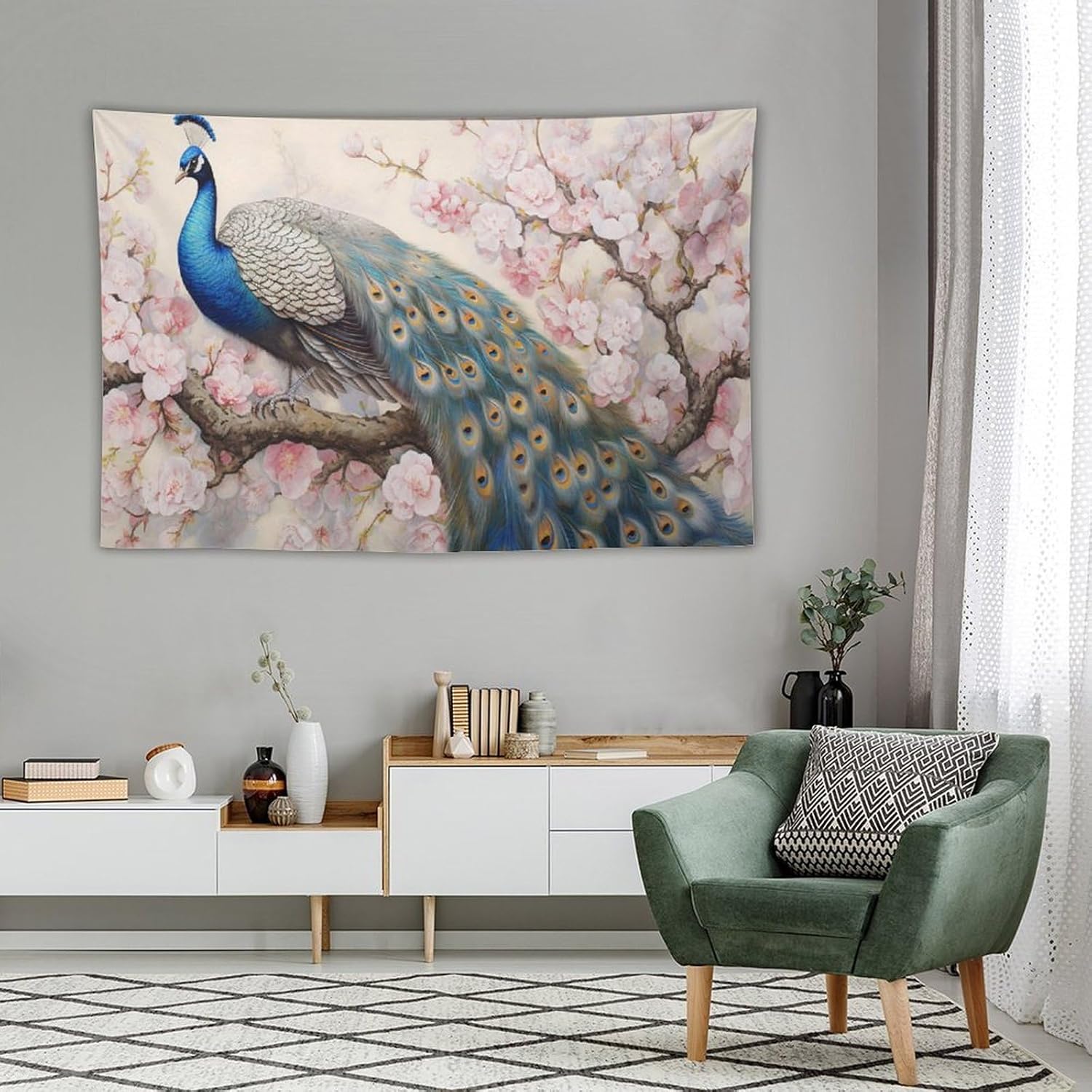 Peacock Tapestry Peacock Tapestries Fabric Wall Hanging Aesthetic Space Garden Indoor Outdoor Wall Art Tablecloth Bedspread Decoration for Bedroom Dormitory Living Room Home Decor 60"x90"