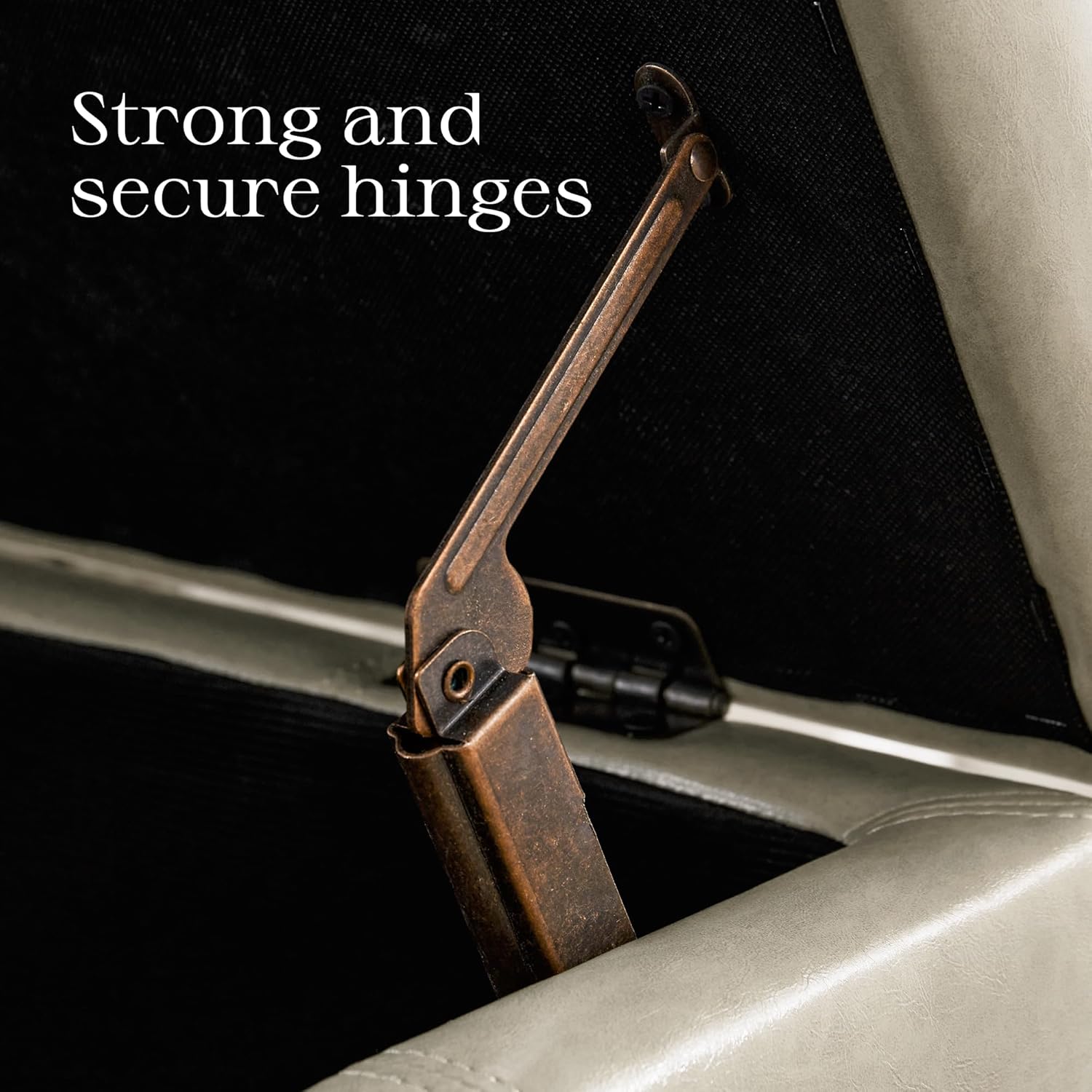HUIMO Square Storage Ottoman, Tufted Leather Ottoman for Living Room (Khaki)