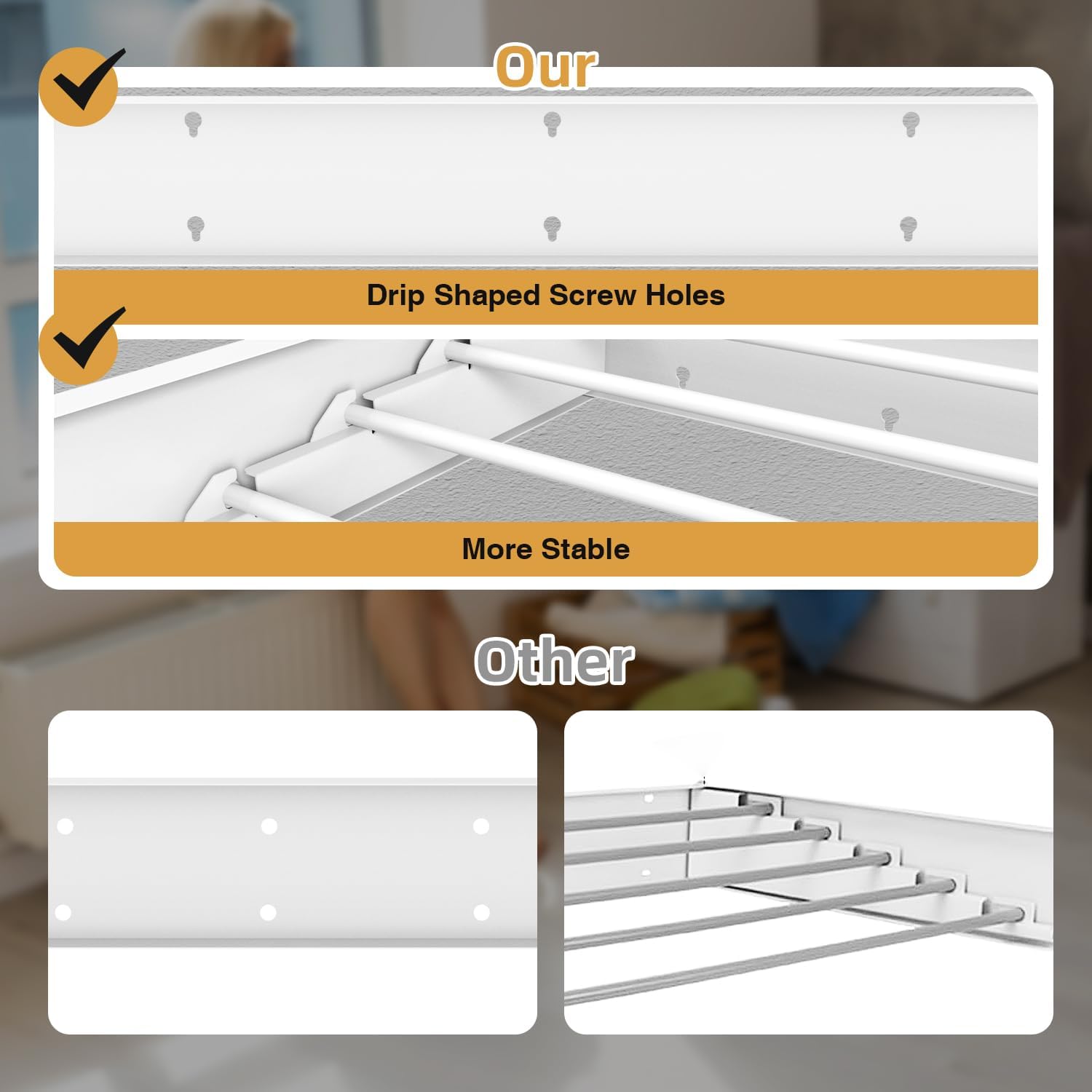 - Heavy Duty & Sturdy: 5 drying rods of the collapsible clothes drying rack are made from premium stainless steel, noticeably thicker and more robust than the standard silver pipes seen in the market, without risk of bending or deformation. 60lbs Capacity. This clothes dryer rack takes up little room, but when open you can fit so much! Compact yet functional.