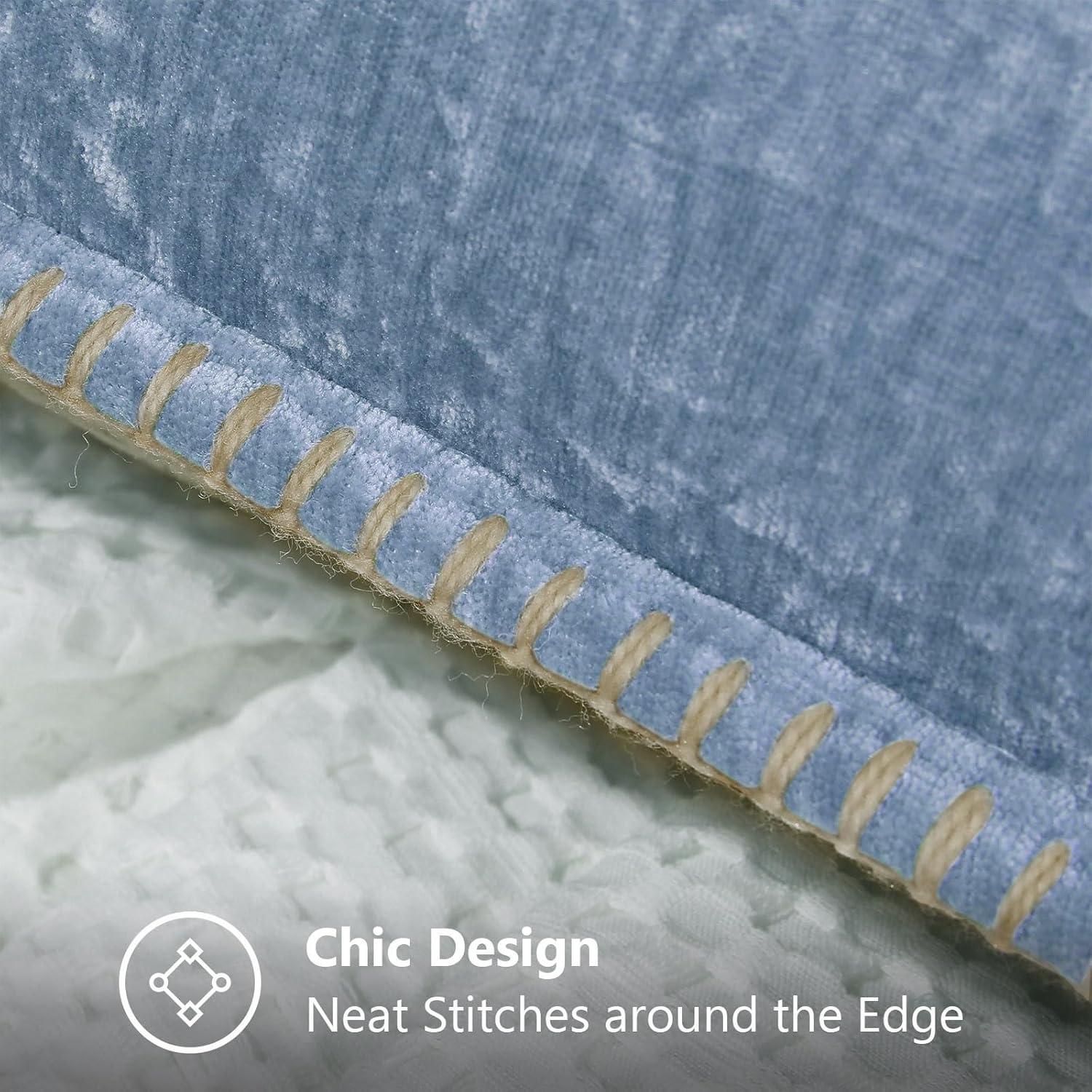 decorUhome Chenille Soft Throw Pillow Covers 20x20 Set of 2, Farmhouse Velvet Neutral Decorative Euro Pillow Covers with Stitched Edge for Couch Sofa Bed Home Decor, Blue