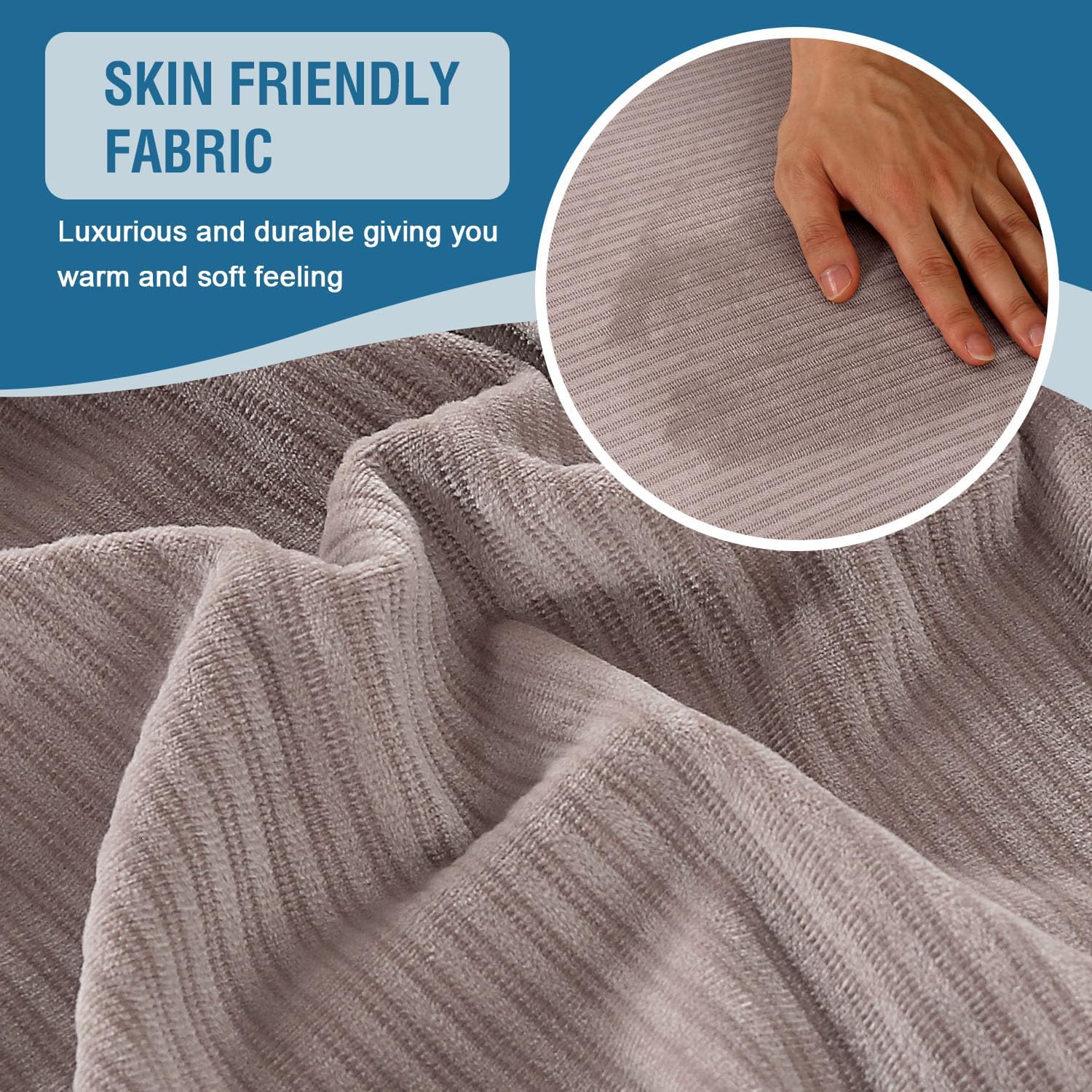 - INCREDIBLY COMFORTABLE VELVET: Products passed GLOBAL RECYCLED STANDARD certificate. 3 pieces included. Crafted from luxurious velvet plush fabric with unique striped cuts, feature thick, soft, smooth, anti-wrinkle, no fading, durable as well as highly stretch. Protect your cushion furniture from daily wears and tears, stains, kids, scratches from pet claws, dogs or accidental spills