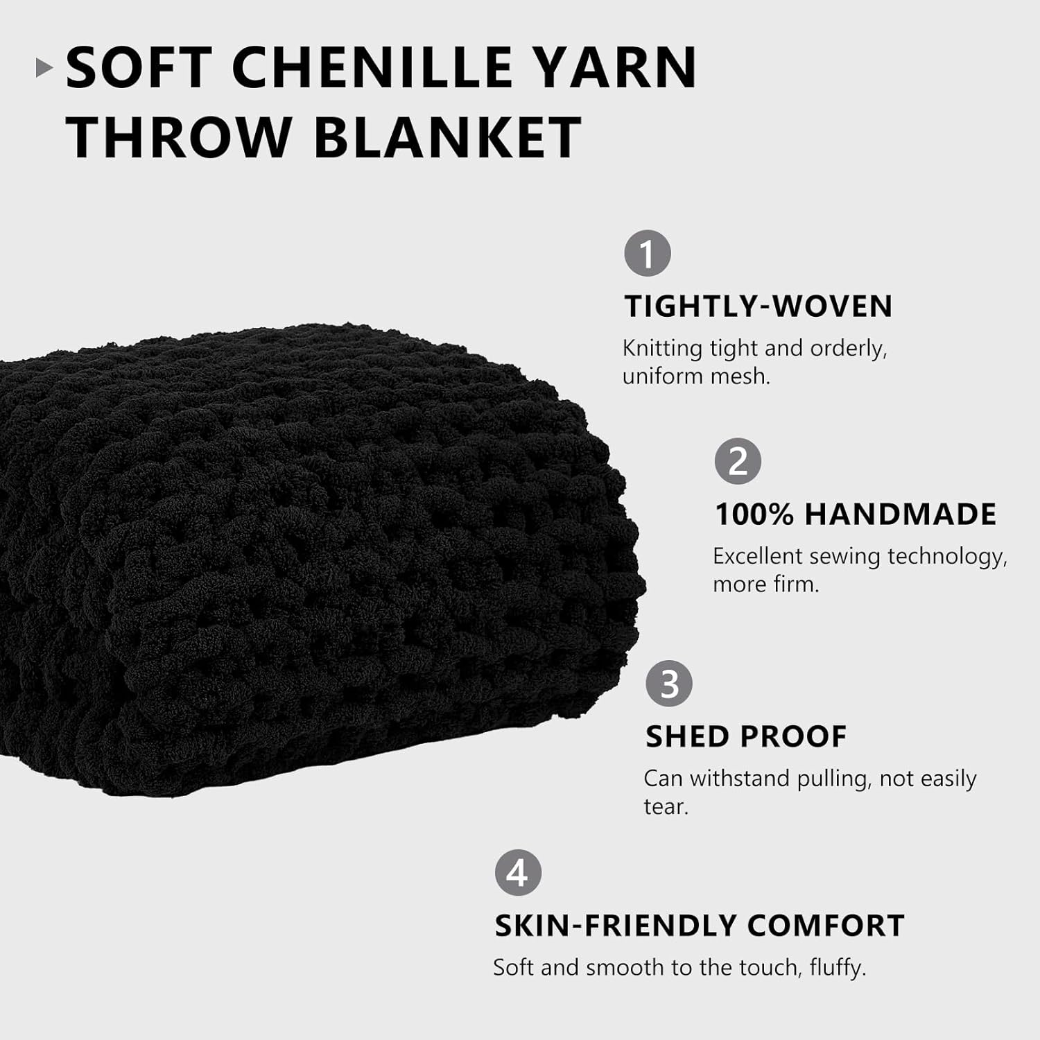 L'AGRATY Chunky Knit Blanket Throw: Soft Chenille Yarn Throw Blanket 60x80 - Handmade Thick Cable Crochet Blanket - Large Chunky Rope Throw Blanket for Couch Sofa Bed Home Decor(Black)