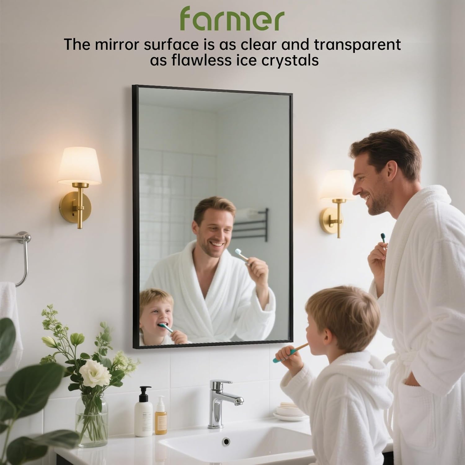 FARMER 24x36 Inch Black Bathroom Mirror, Rectangle Wall Mounted Mirror, Vanity Mirror, Brushed Square Mirror, Framed Bathroom Mirror for Bedrooms, Entryways, Living Rooms, Horizontal/Vertical