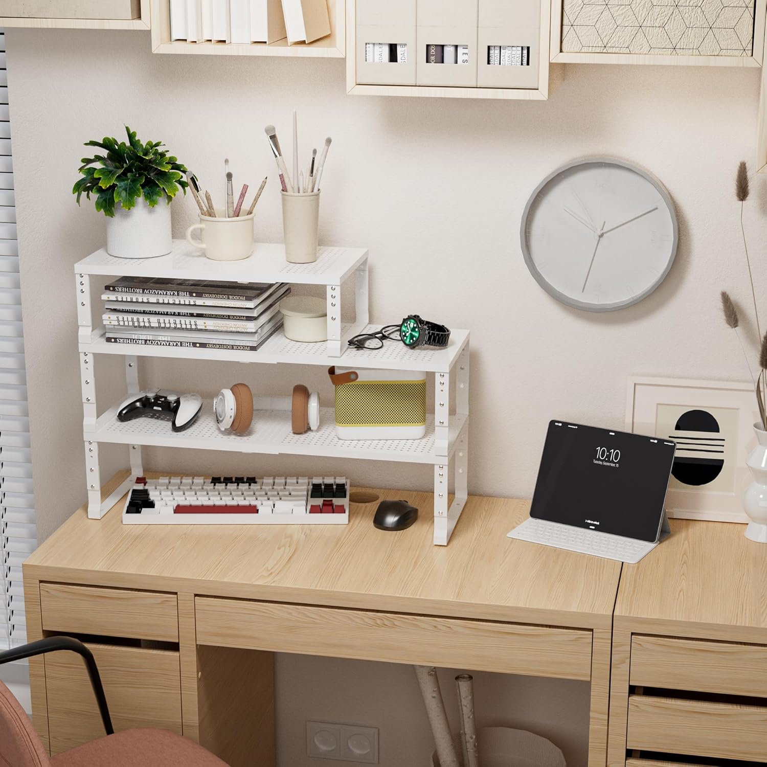 Expandable,Adjustable & Stackable Spice Rack, Cabinet Kitchen Countertop Shelf Organizer,Metal Pantry Storage Shelves - Space-Saving Storage Solution(1Pack/White/Large)