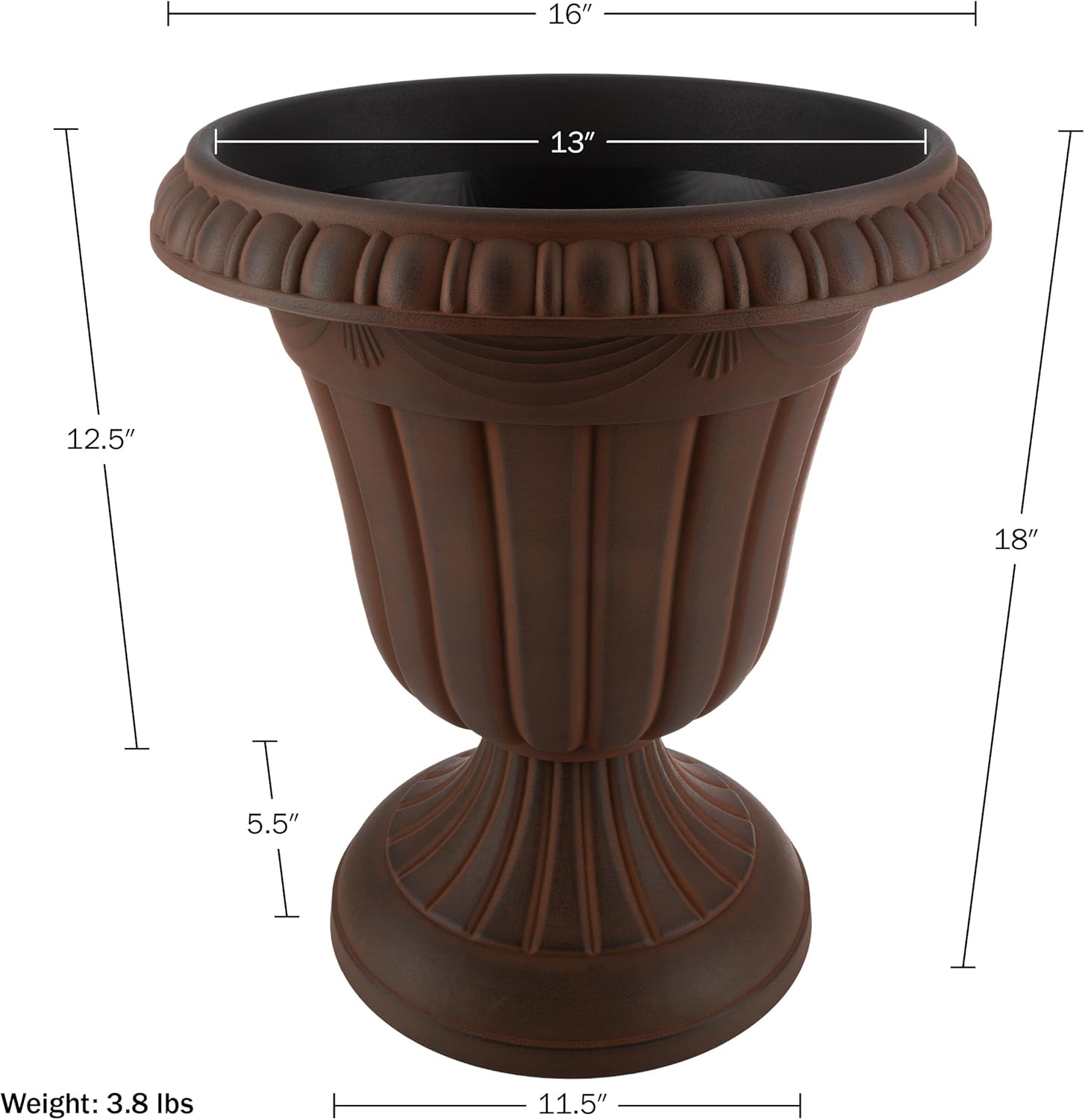 Pure Garden Outdoor Planter 2-Pack - 16x18-Inch Urn Planters - Plastic Plant Pots for Indoor, Outdoor, or Front Porch Decor - Flower Pots (Brown)
