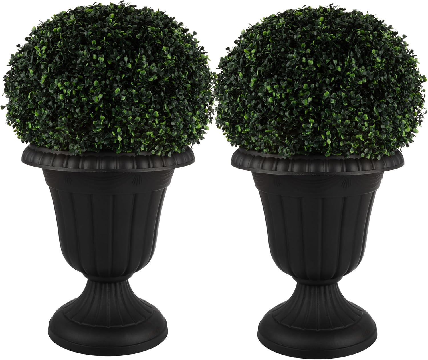 Pure Garden Outdoor Planter 2-Pack - 16x18-Inch Urn Planters - Plastic Plant Pots for Indoor, Outdoor, or Front Porch Decor - Flower Pots (Black)