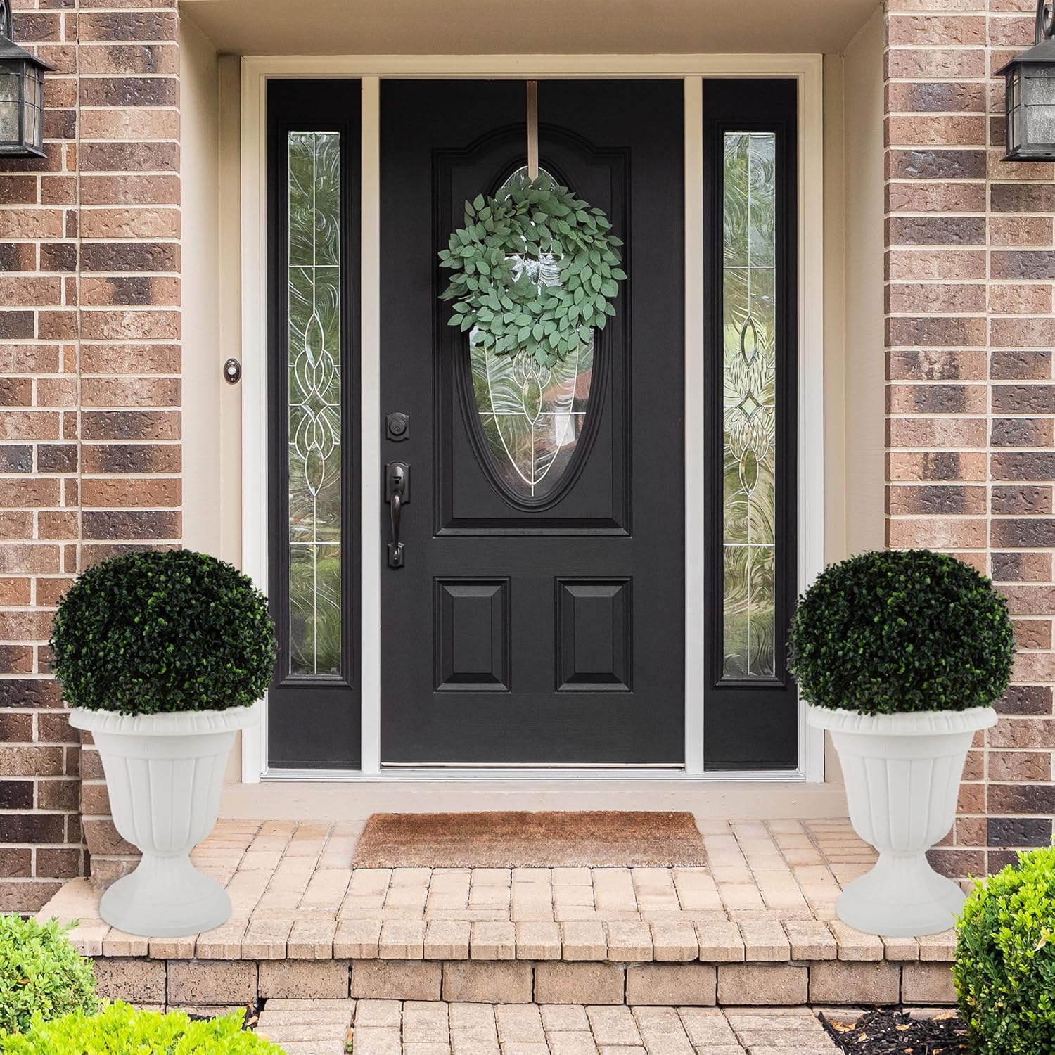 - PRODUCT DETAILS - Materials: Recycled Polypropylene Plastic. Dimensions: (L) 16β x (W) 16β x (H) 18β; Weight: 3.8lbs; Interior Planting Space: 13β Diameter x (H) 12.75β; Soil Capacity: 30lbs/13.6L. Front Door Planters Outdoor Set of 2. Color: White.