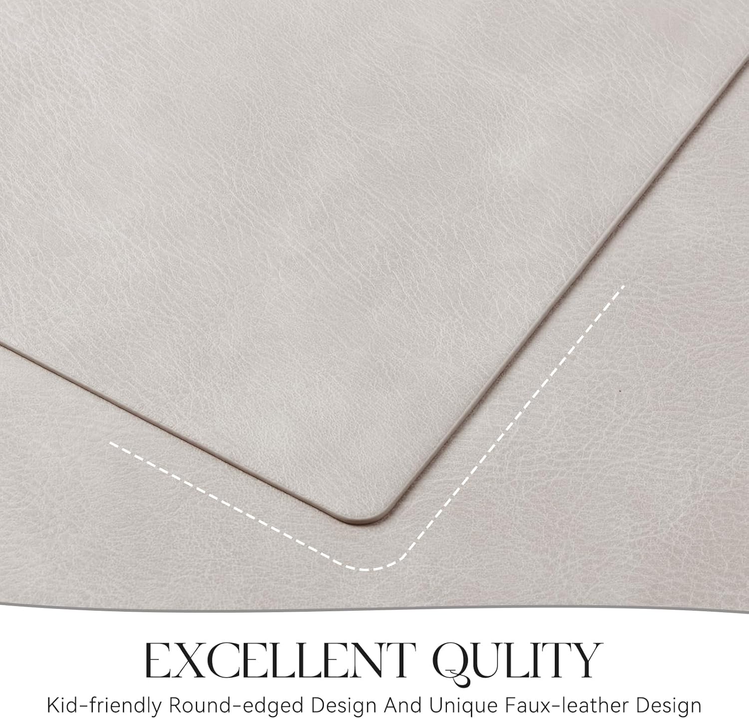 MOSAYT Vinyl Placemats Set of 4-12 X 17 Inch - Faux Leather 100% Waterproof Oil-Proof Wipeable PU Place Mats, Heat Resistant Reversible Table Mats for Kitchen, Dining, Outdoor (Light Grey)