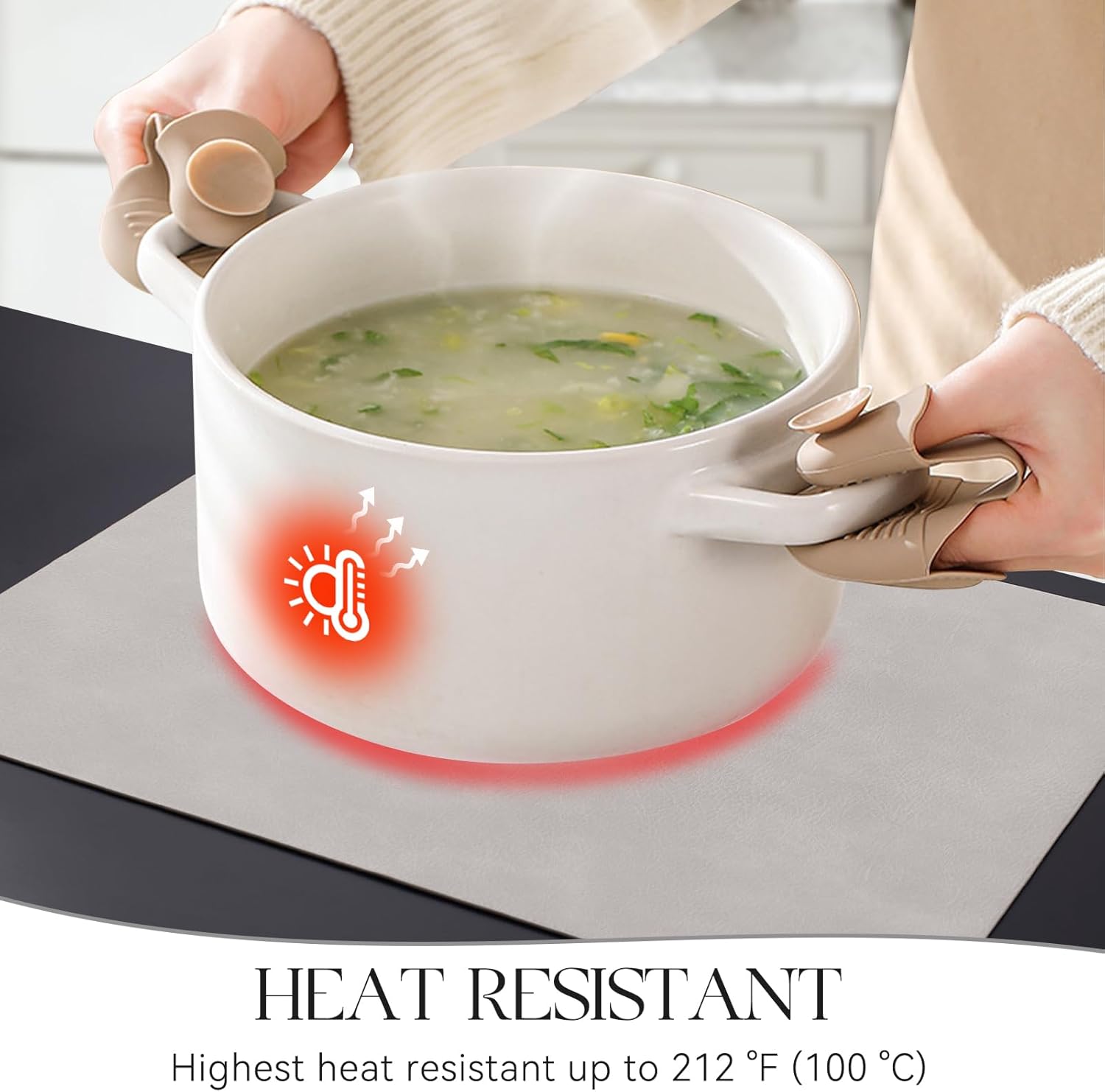 - PROTECT YOUR TABLE: Our placemats are 2mm thick and heat-resistant up to 212β/100β, which can protect your table from high temperatures and reduces noise from plates and flatware. It is an excellent choice to protect protect the surface of your dining table from hot dishes and liquid spills.