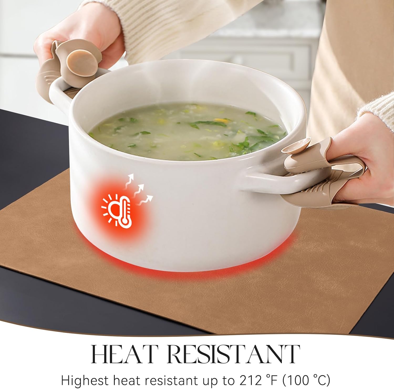 - PROTECT YOUR TABLE: Our placemats are 2mm thick and heat-resistant up to 212β/100β, which can protect your table from high temperatures and reduces noise from plates and flatware. It is an excellent choice to protect protect the surface of your dining table from hot dishes and liquid spills.