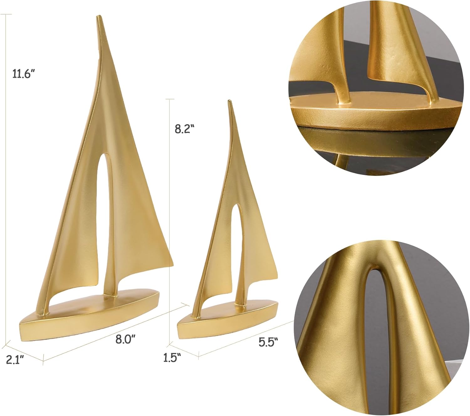 Modern Sculptures Home Decor, Gold Sailboat Decor Ornament, Boat Decorations Statue Decor, Art Sculptures and Statues, Sailboat Gifts Home Office Bathroom Shelf Decor Nautical Decor (2 Pack)