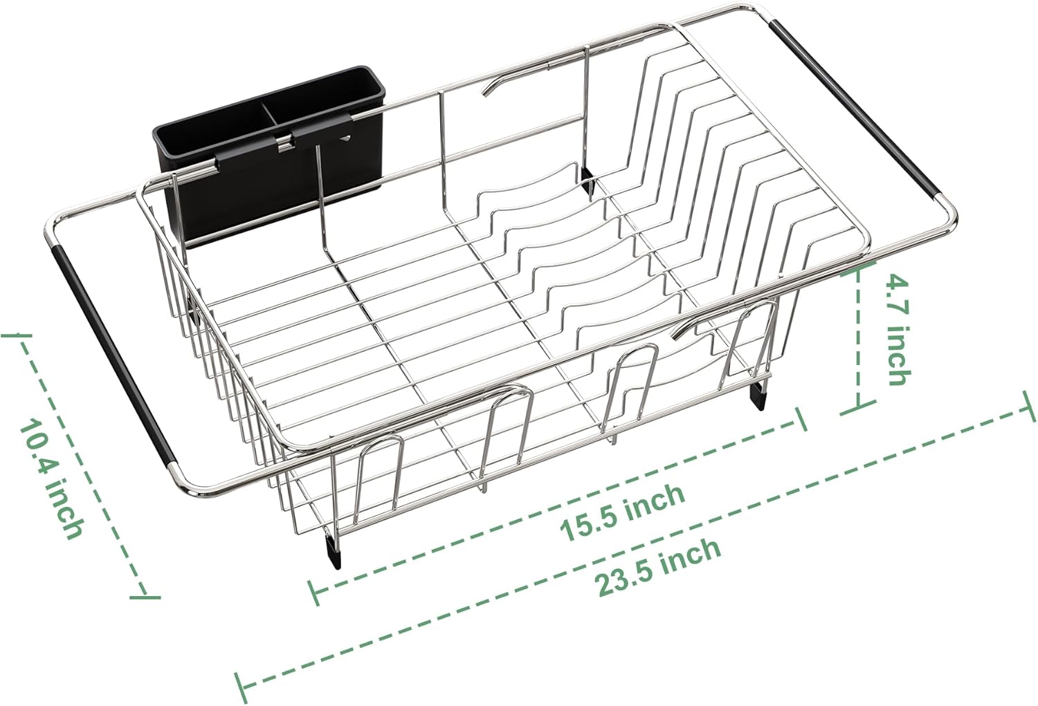 - Rustproof & Sturdy: Dish drying rack in sink is made of food-grade Stainless Steel and constructed of thickened tube pipes, Stable and High Load Bearing, which can effectively prevent rust and deformation. What's more, it can be cleaned effortlessly under running water
