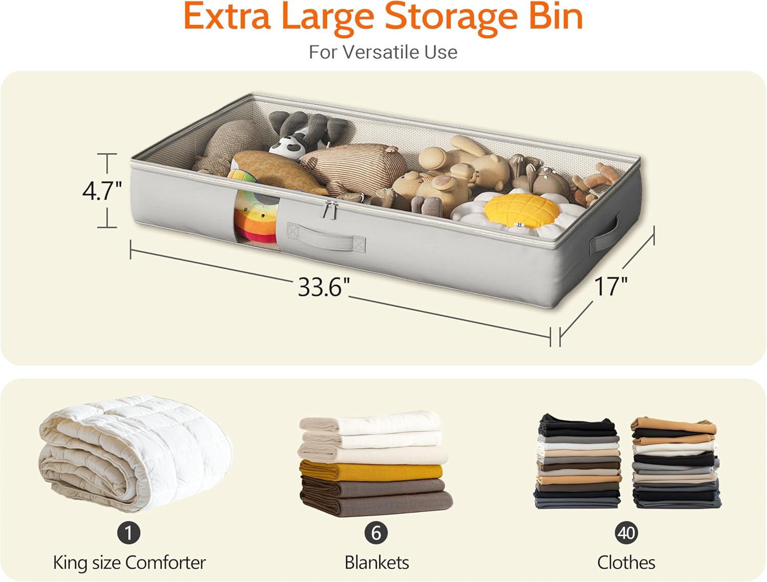 - Effortless Handling: Designed for your convenience, our storage bag features three reinforced handles on the front and sides. Easily pull it out from under the bed without hassle. Handling has never been this easy!