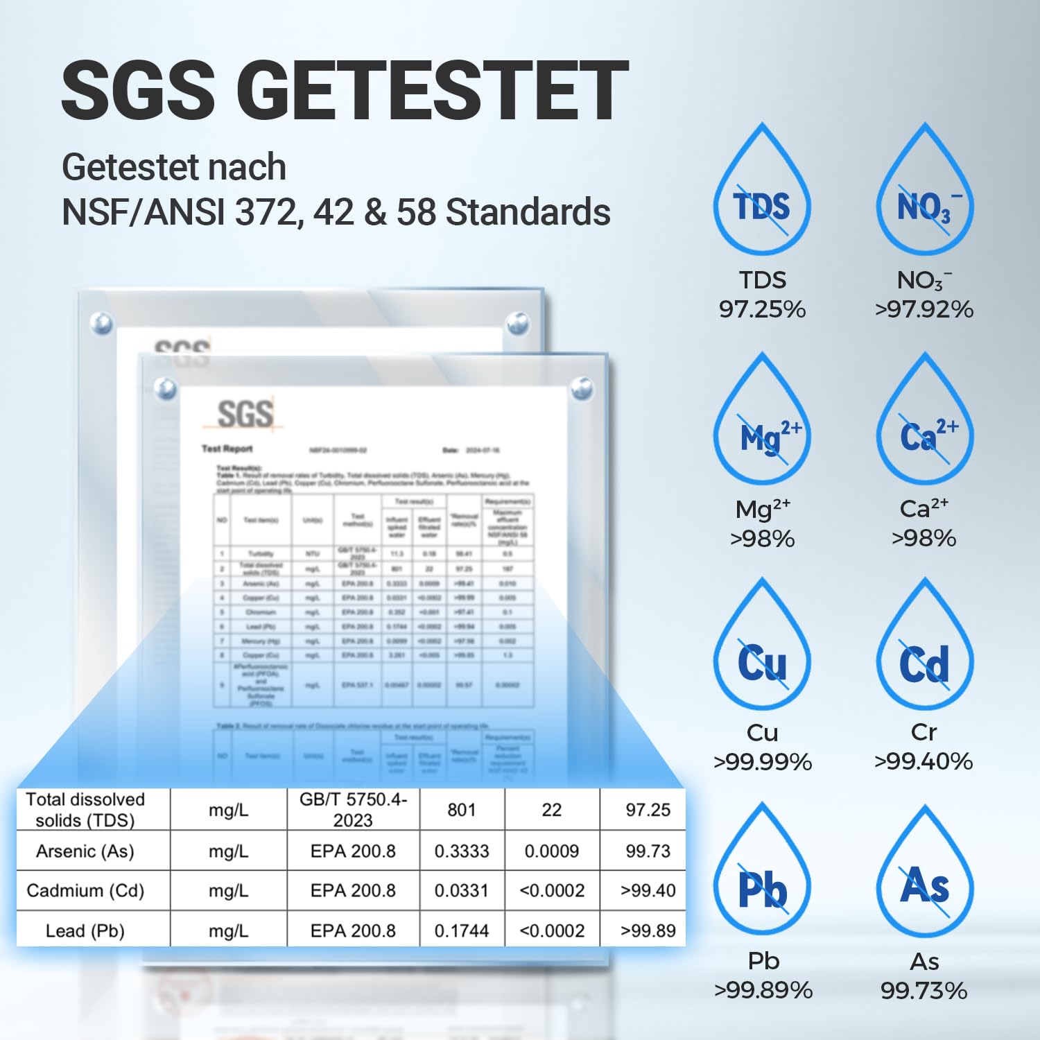 - 8 Stage Filtration: The reverse osmosis system features a 0.0001 ΞΌm membrane that effectively filters PFAS, heavy metals like lead, arsenic, and aluminum while the PCT filter enhances taste. This RO system is NSF/ANSI 58 certified for water assurance